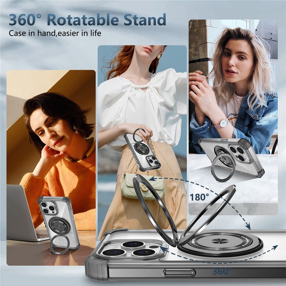 - 360-Degree Rotatable Kickstand Equipped with a 360-degree rotatable ring kickstand, it allows for convenient hands-free viewing in multiple angles, perfect for reading, watching videos, or video calls