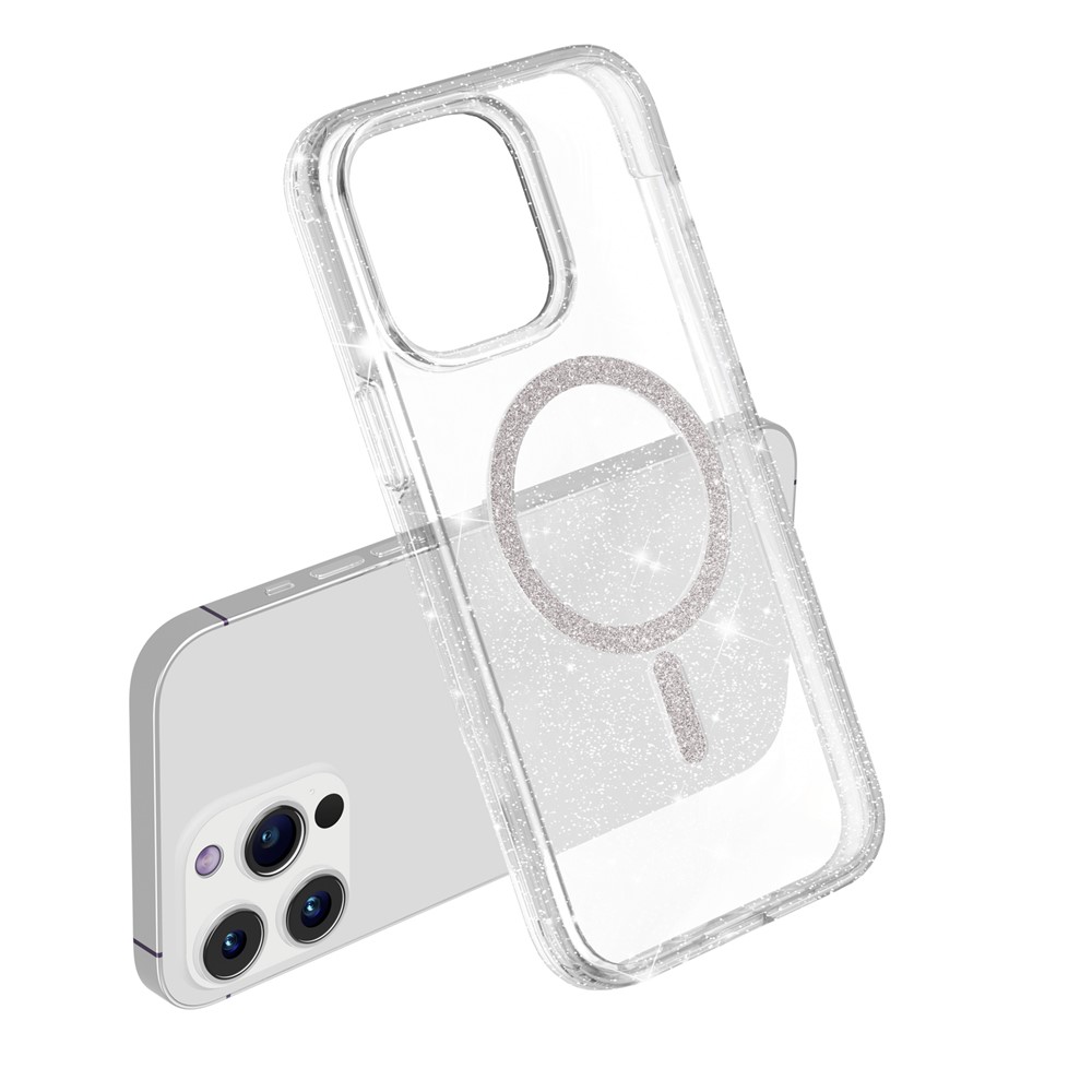For iPhone 13 Pro Phone Case Compatible with MagSafe Glitter PC + TPU Hybrid Shockproof Cover – White