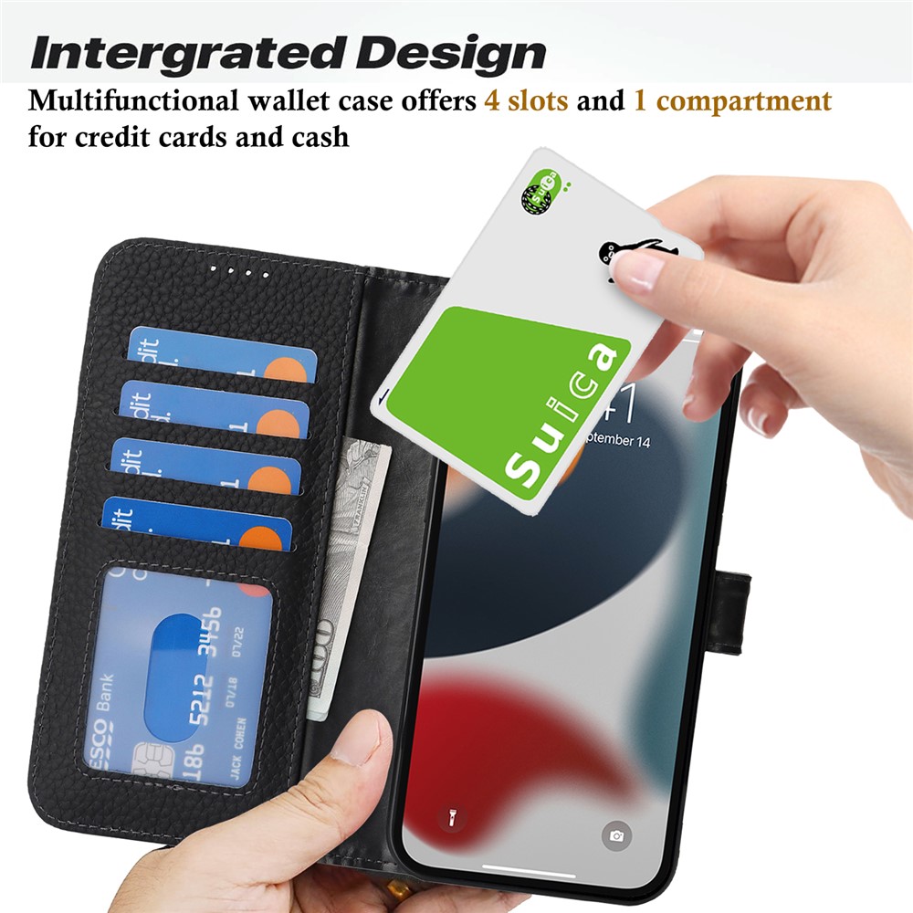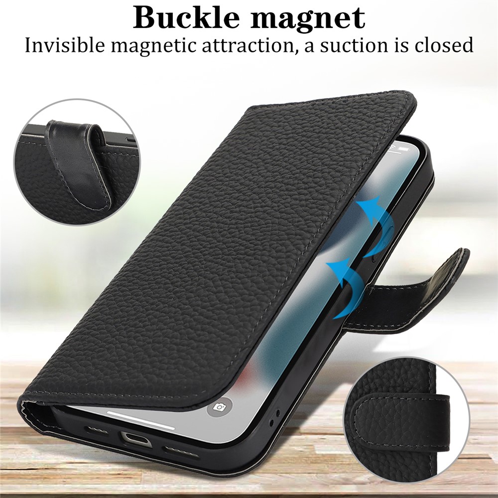 - Premium Material Combination Crafted with a litchi textured genuine cow leather exterior for a premium look and feel, paired with a flexible TPU inner shell that offers excellent shock absorption and long-lasting protection