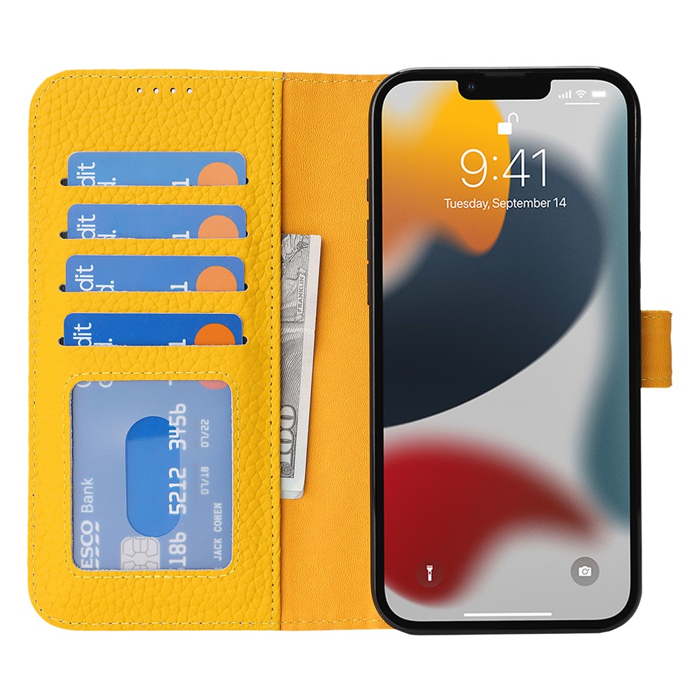 - Premium Material Combination Crafted with a litchi textured genuine cow leather exterior for a premium look and feel, paired with a flexible TPU inner shell that offers excellent shock absorption and long-lasting protection