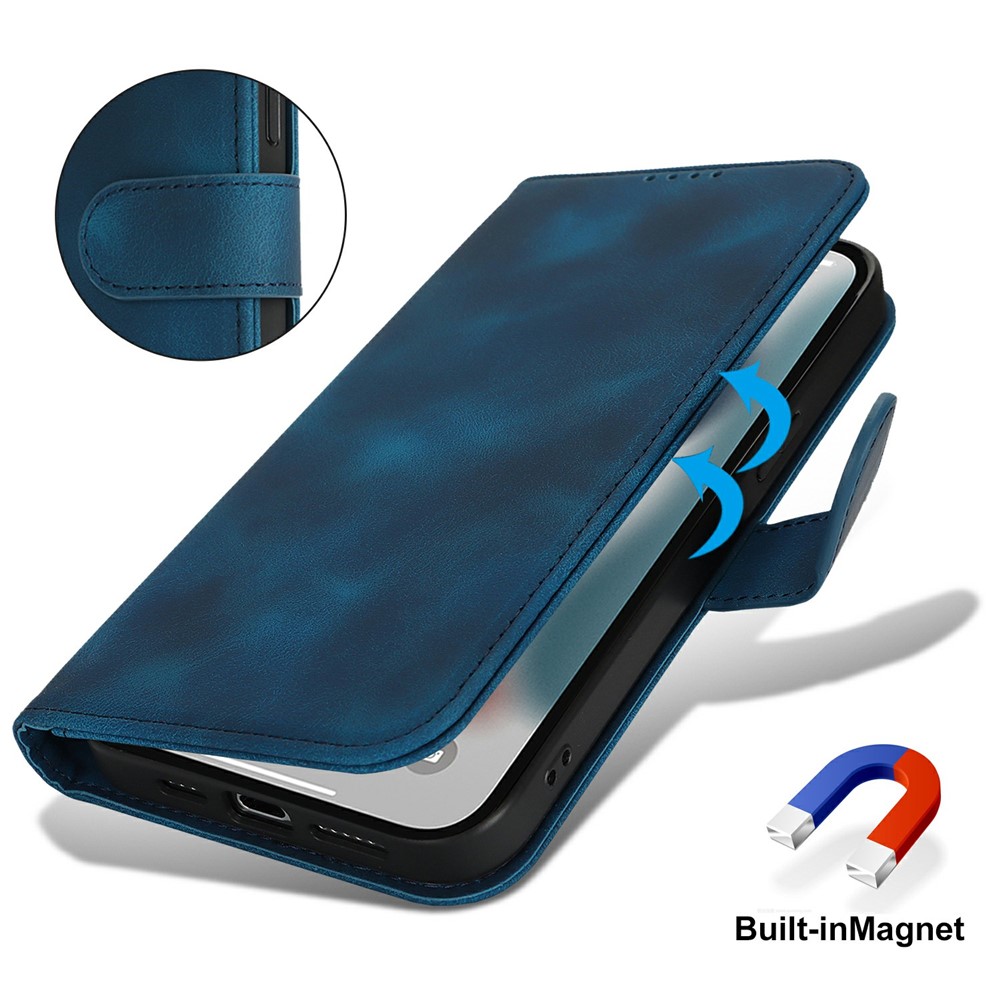 For iPhone 13 Pro Wallet Case Double Folded Edge Skin Touch PU Leather Flip Phone Cover – Blue