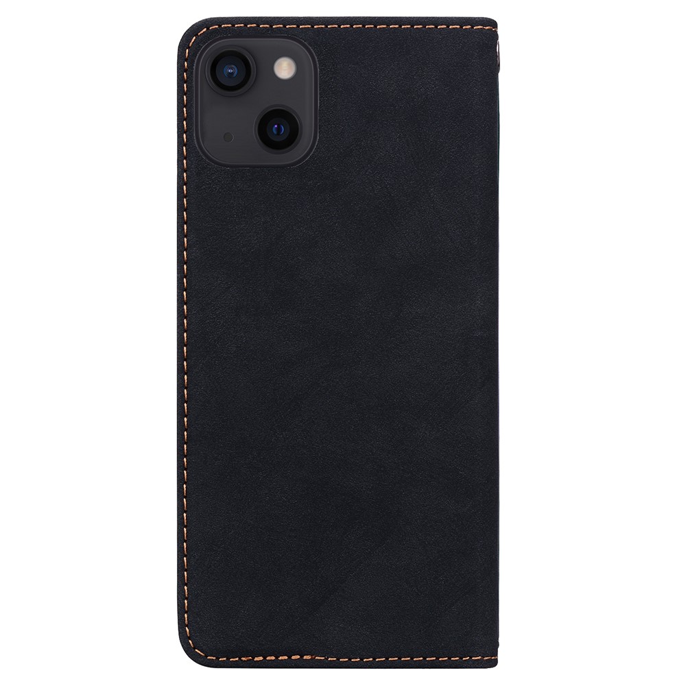 For iPhone 14 / 13 Case Lines Pattern Wallet Leather Phone Cover with Strap – Black