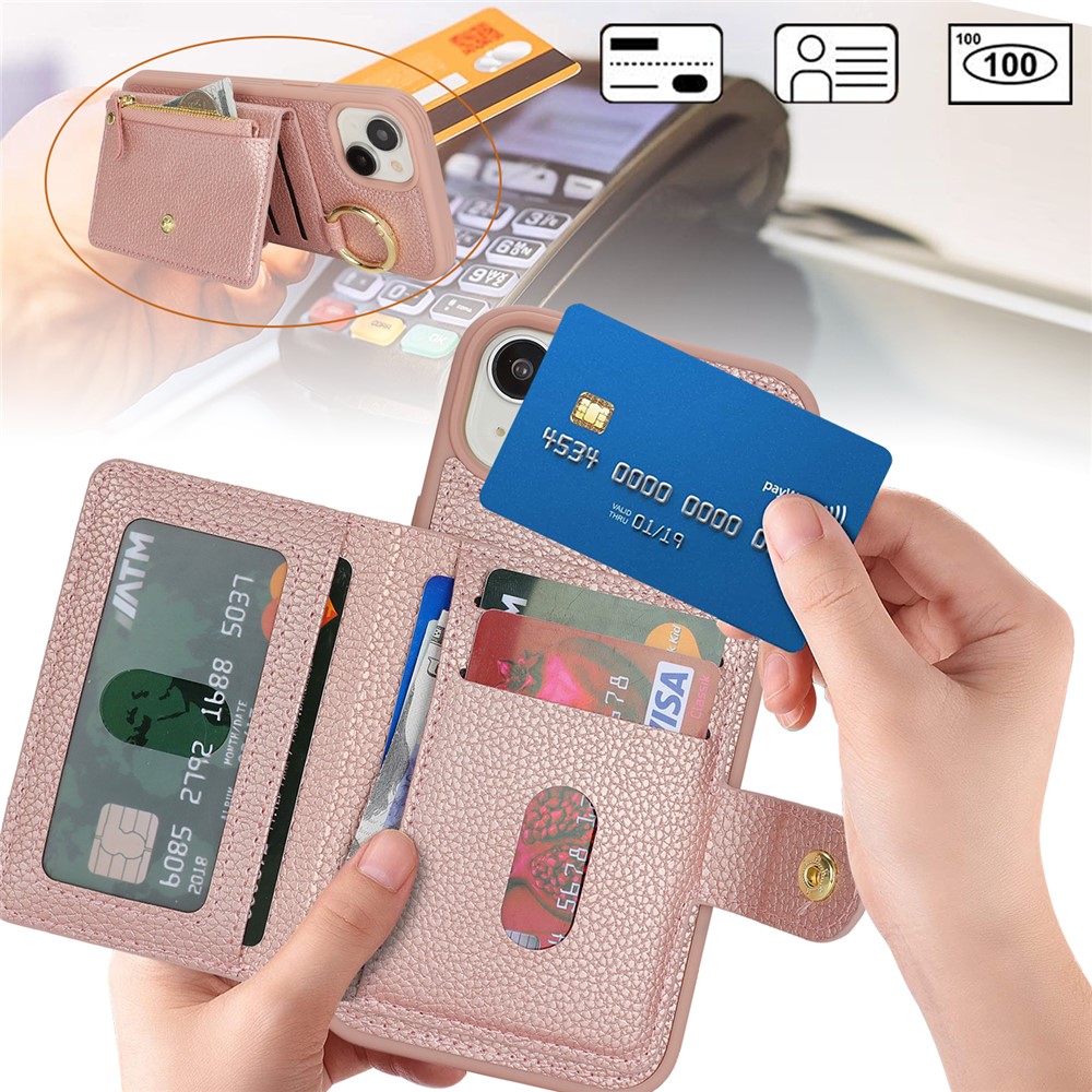 - Zipper Wallet with Multiple Card Slots Designed with a practical zipper wallet section and multiple card slots secured by a snap-button flap, making it easy to store your ID, credit cards, cash, or transit passes securely on the go