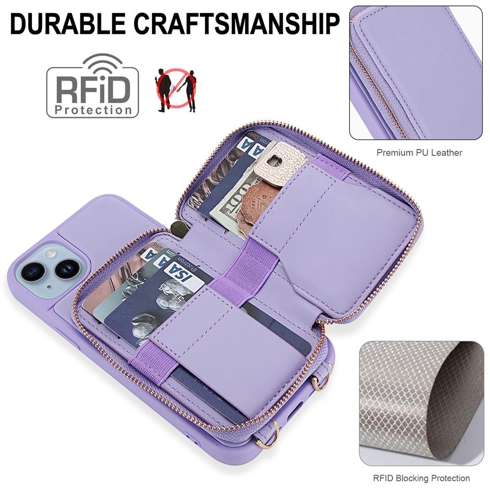 - 2-in-1 Crossbody Wallet Case Combines a phone case and zip wallet design, allowing you to carry cards, cash, and your phone together in one stylish accessory.