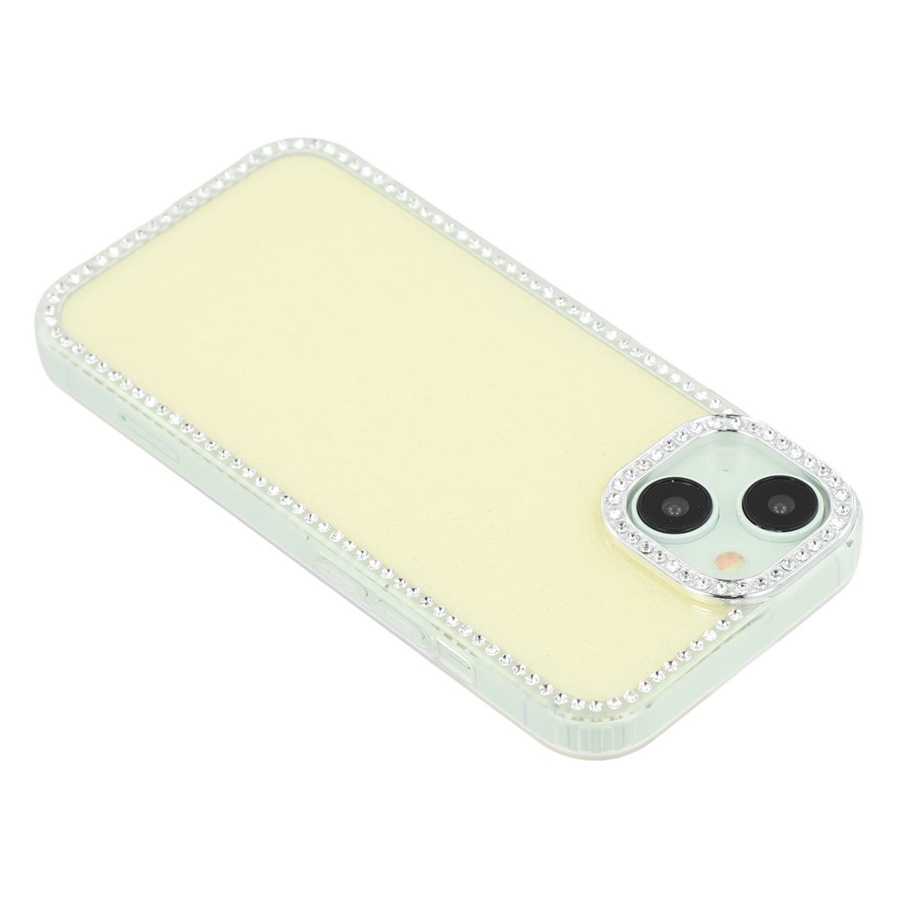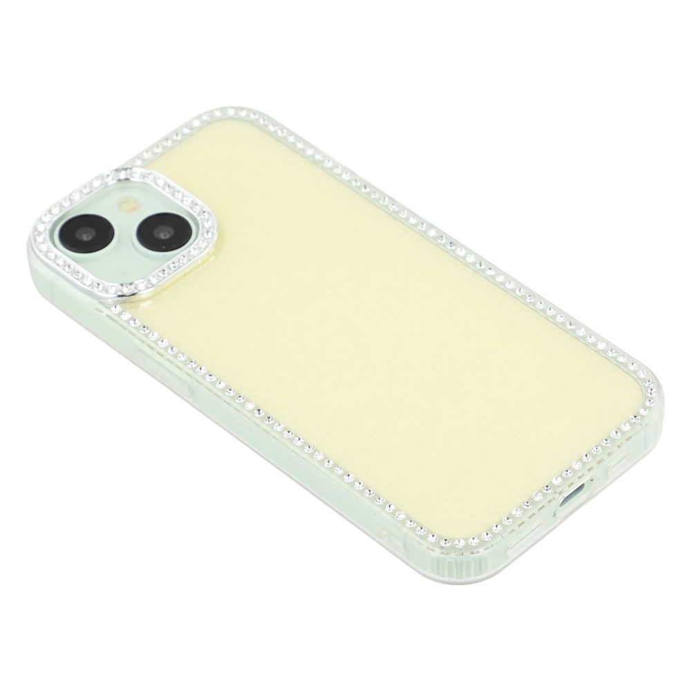 For iPhone 14 / 13 Case Rhinestone Edge Glitter Back TPU + PC IMD Phone Cover - Glitter Light Yellow