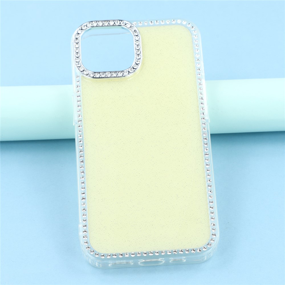 For iPhone 14 / 13 Case Rhinestone Edge Glitter Back TPU + PC IMD Phone Cover – Glitter Light Yellow