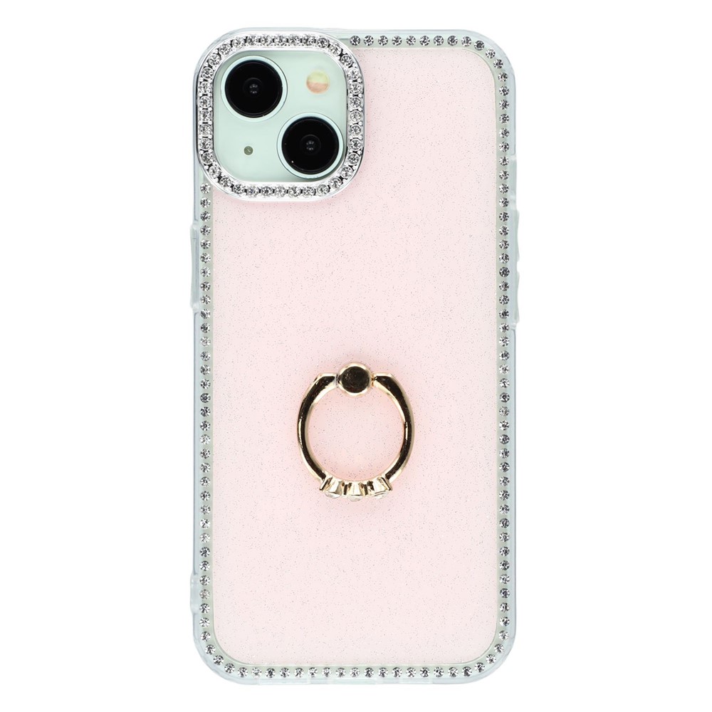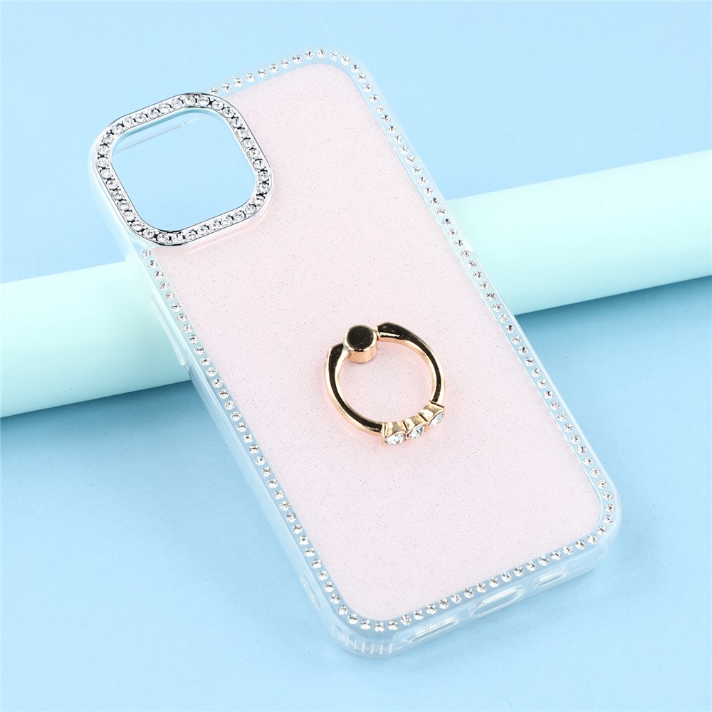 For iPhone 14 / 13 Case with Ring Kickstand Rhinestone Edge TPU + PC IMD Phone Cover - Glitter Light Pink