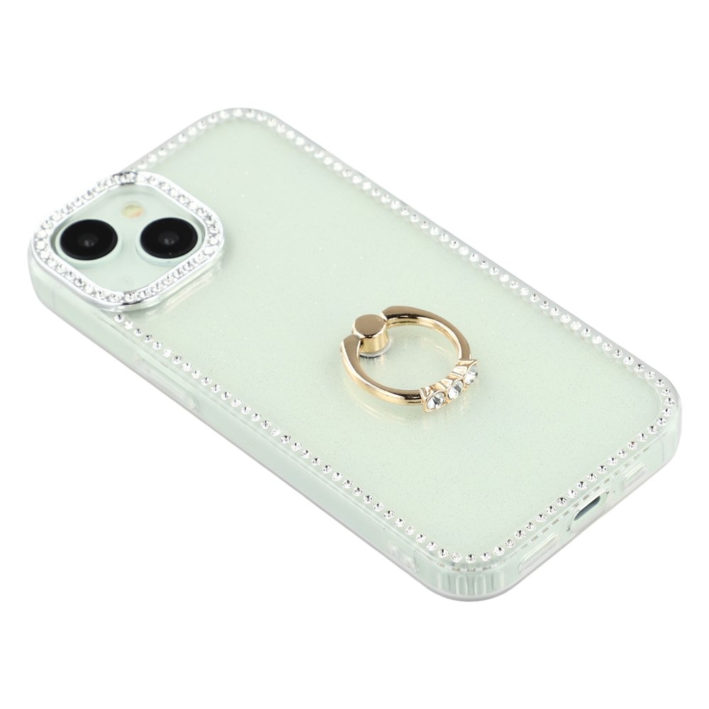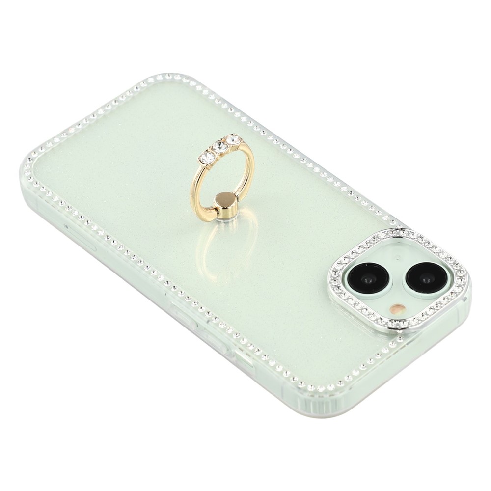 • For iPhone 14 / 13 Case with Ring Kickstand Rhinestone Edge TPU + PC IMD Phone Cover - Glitter Light Green