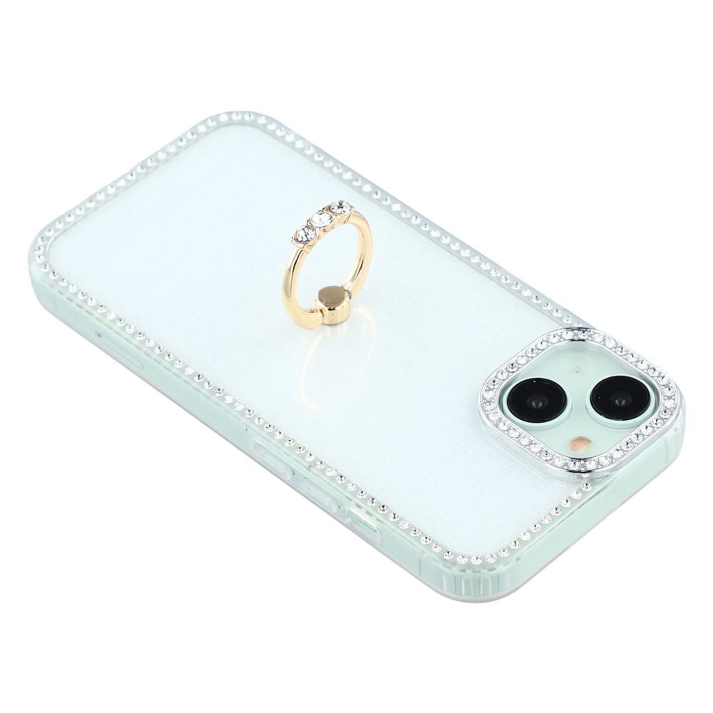 • For iPhone 14 / 13 Case with Ring Kickstand Rhinestone Edge TPU + PC IMD Phone Cover - Glitter Light Green