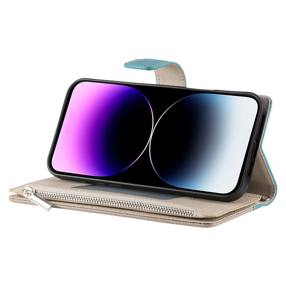 - Ample Storage Features two photo slots, six card slots, one wallet compartment, and an internal zippered pocket for coins. Store your ID, cards, cash, and coins securely