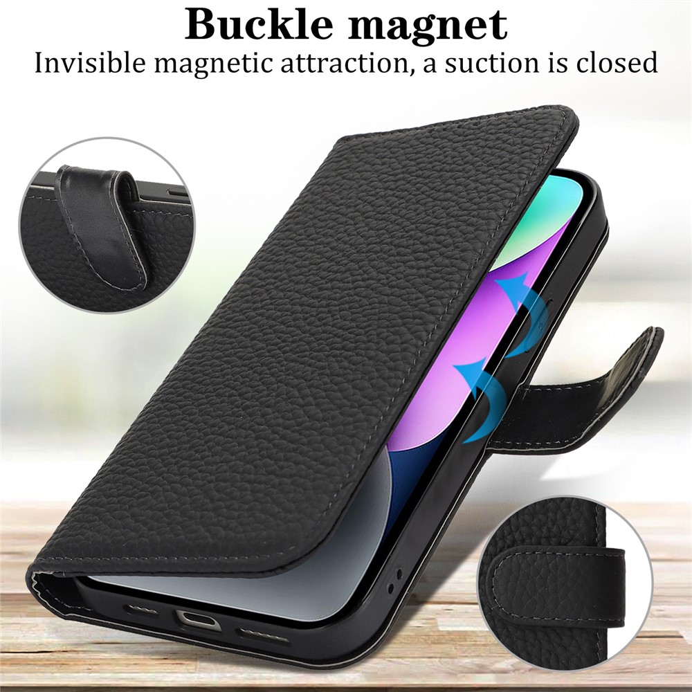 - Premium Material Combination Crafted with a litchi textured genuine cow leather exterior for a premium look and feel, paired with a flexible TPU inner shell that offers excellent shock absorption and long-lasting protection