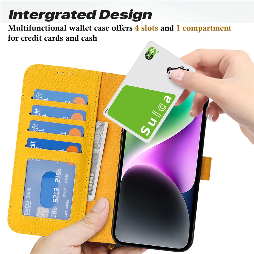 - Premium Material Combination Crafted with a litchi textured genuine cow leather exterior for a premium look and feel, paired with a flexible TPU inner shell that offers excellent shock absorption and long-lasting protection