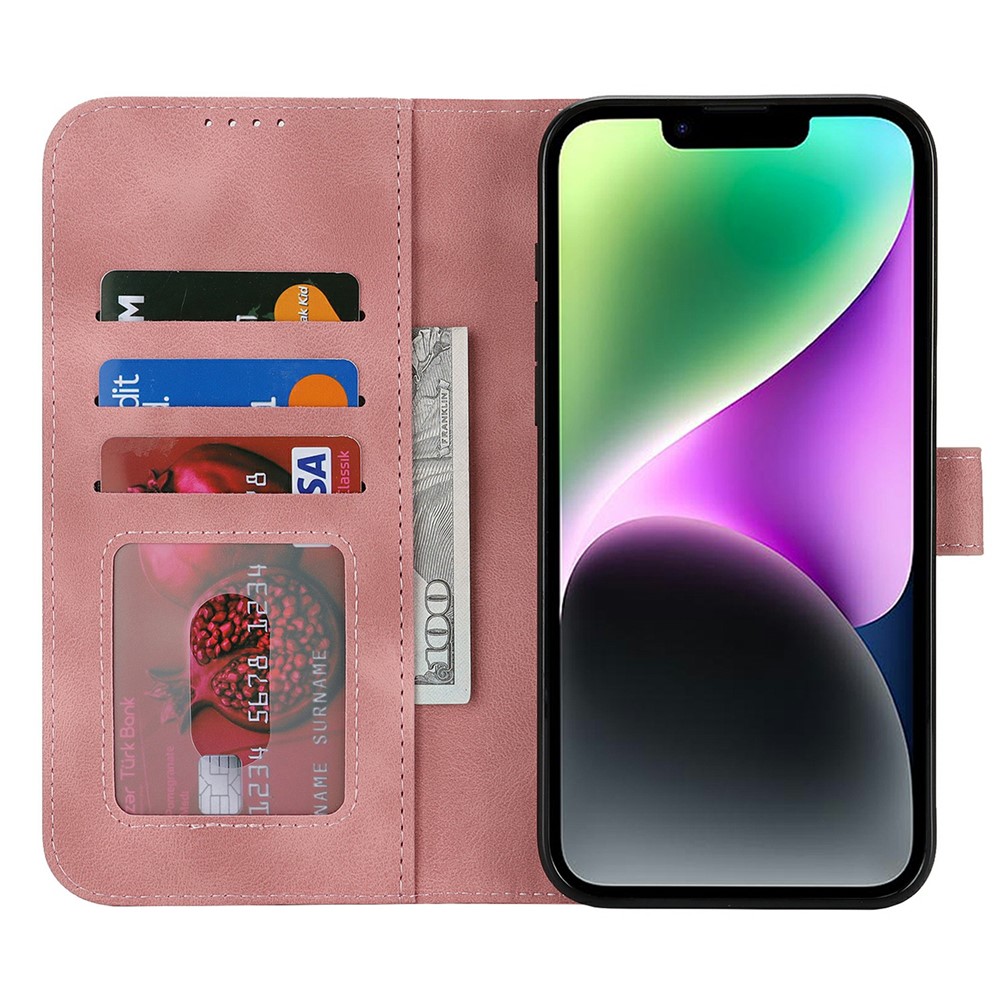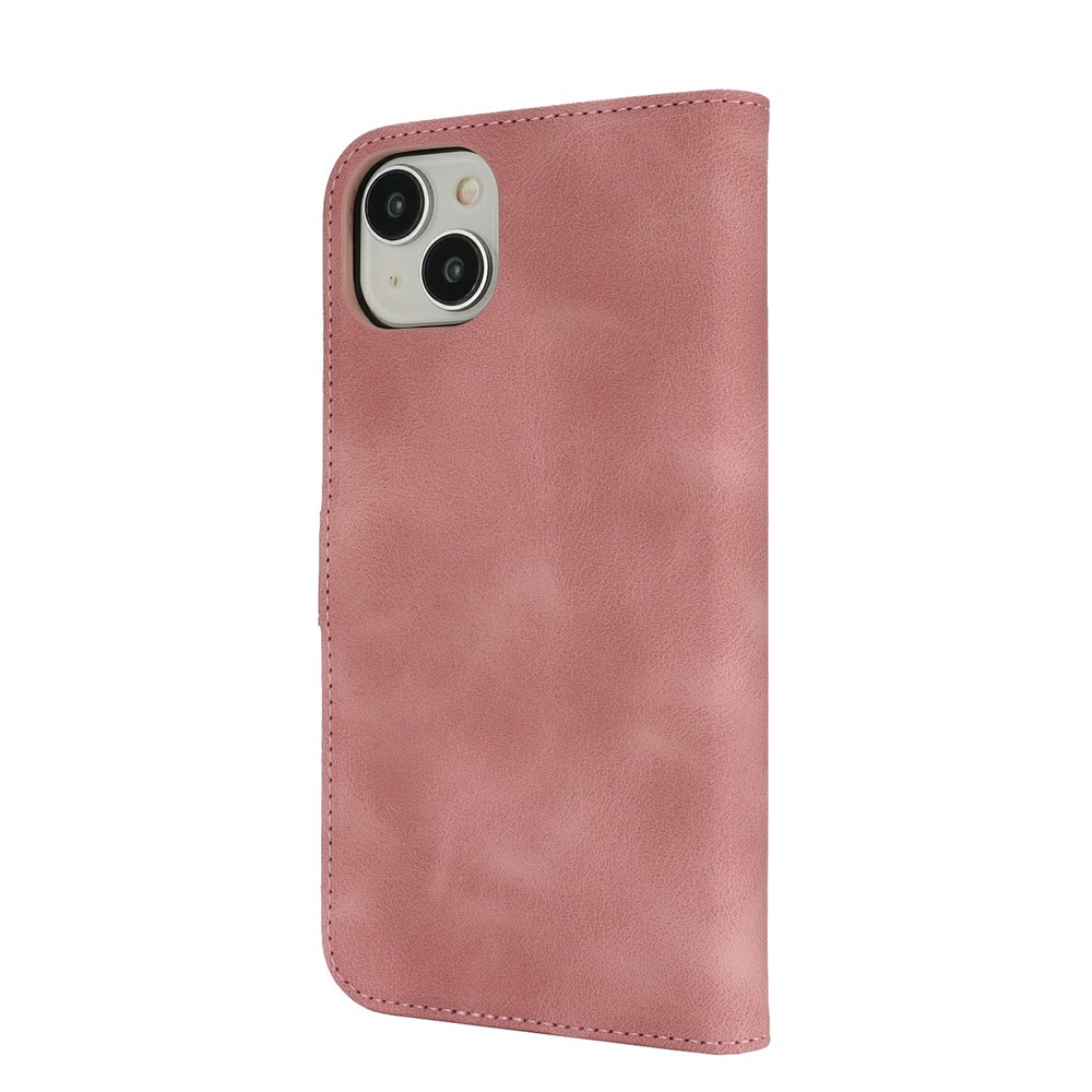 For iPhone 14 / 13 Wallet Case Double Folded Edge Skin Touch PU Leather Flip Phone Cover - Rose Pink