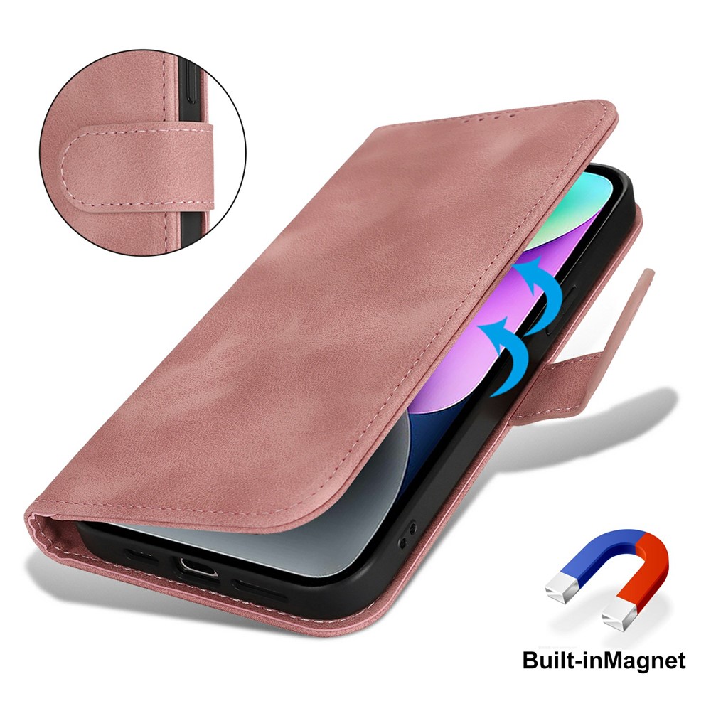 For iPhone 14 / 13 Wallet Case Double Folded Edge Skin Touch PU Leather Flip Phone Cover - Rose Pink $17.16