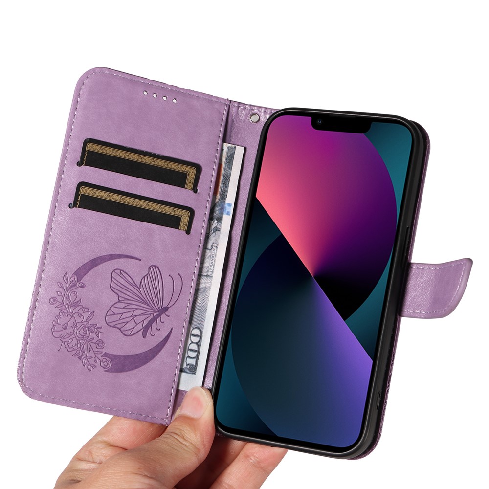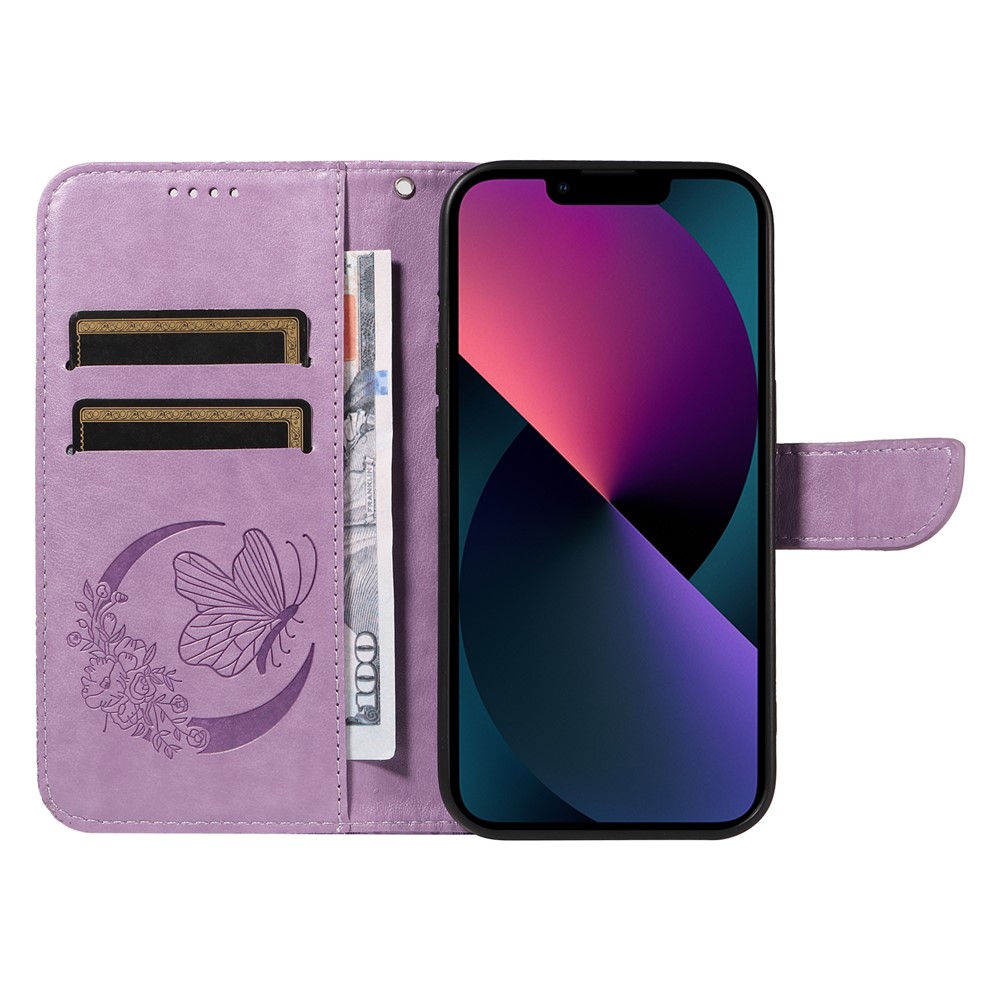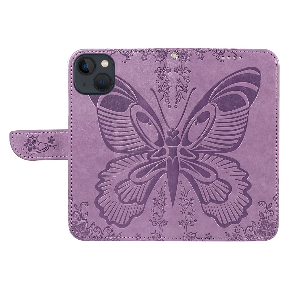 For iPhone 14 Case Butterfly Pattern Leather Phone Cover with Wallet Stand – Light Purple
