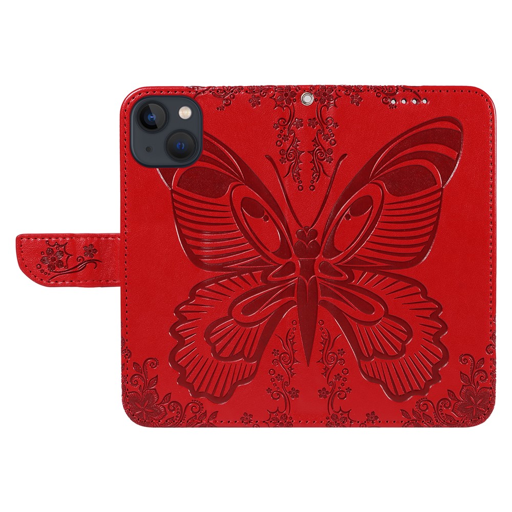 For iPhone 14 Case Butterfly Pattern Leather Phone Cover with Wallet Stand – Red