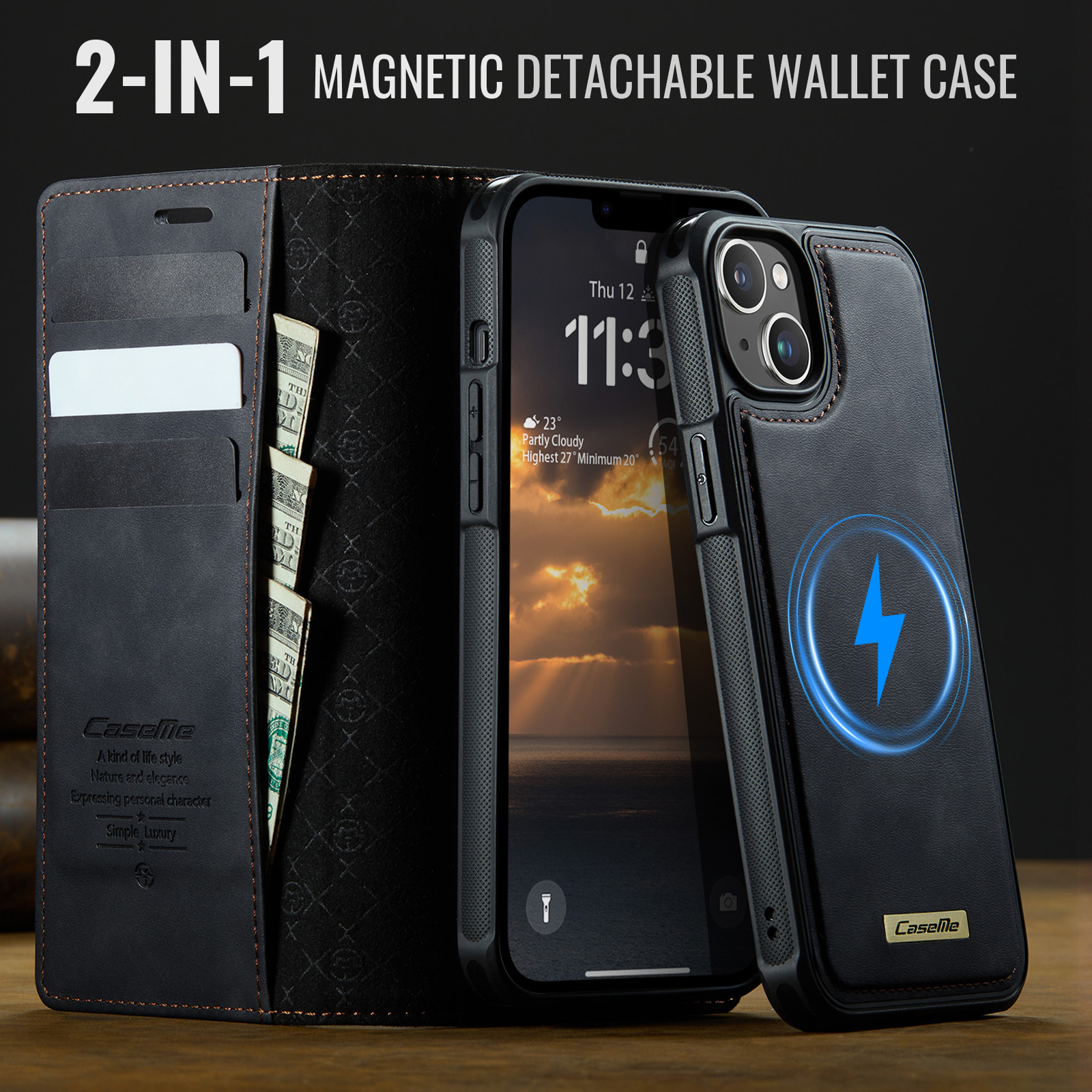 - Magnetic Detachable Wallet Design Built-in 3 card slots, and a cash pocket for credit cards, IDs, and cash. Magnetic detachable 2-in-1 design, can be used as a single shell or as a leather case