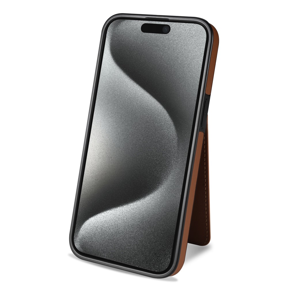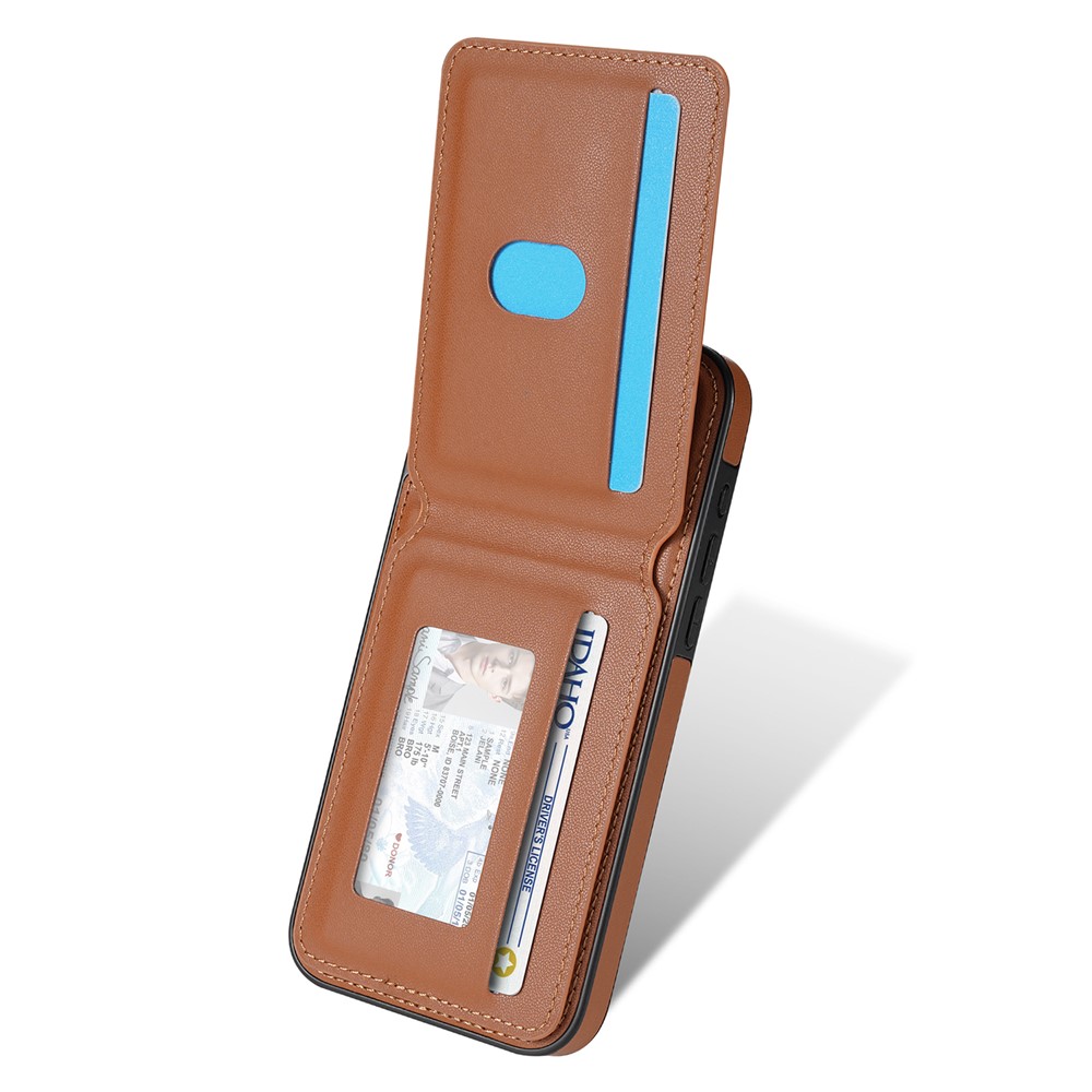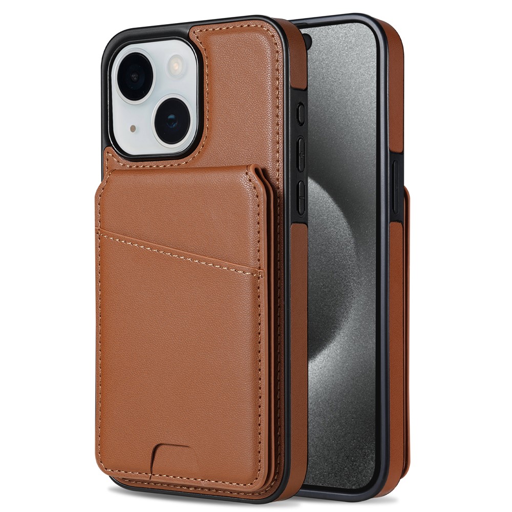 For iPhone 14 Case Compatible with MagSafe Detachable Card Holder Kickstand Leather Phone Back Cover – Brown