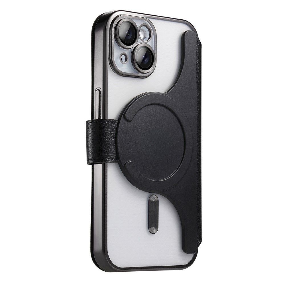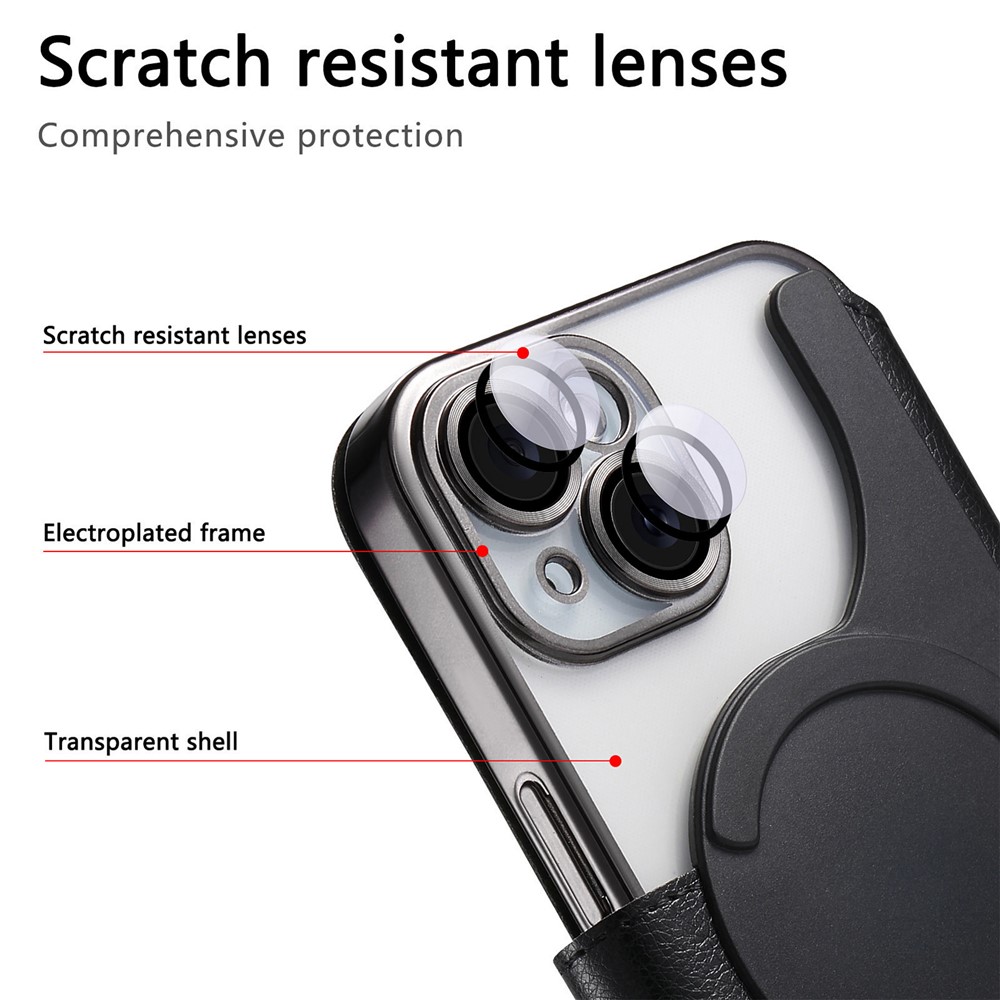 For iPhone 14 Case Compatible with MagSafe Detachable Leather Phone Cover with Lens Film - Black