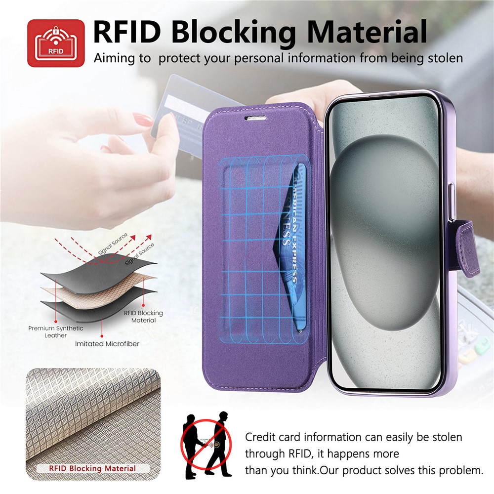 • RFID Technology Equipped with RFID-blocking technology, this case prevents unauthorized scanning of your cards, protecting your sensitive information from identity theft and fraud. It ensures your cards are safe and secure, offering peace of mind in public spaces
