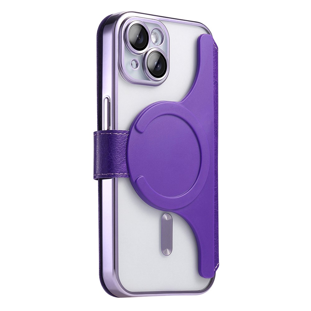 For iPhone 14 Case Compatible with MagSafe Detachable Leather Phone Cover with Lens Film - Light Purple