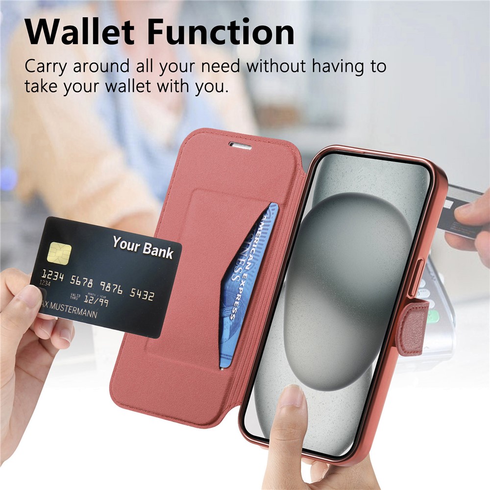 • For iPhone 14 Case Compatible with MagSafe Detachable Leather Phone Cover with Lens Film - Rose Gold