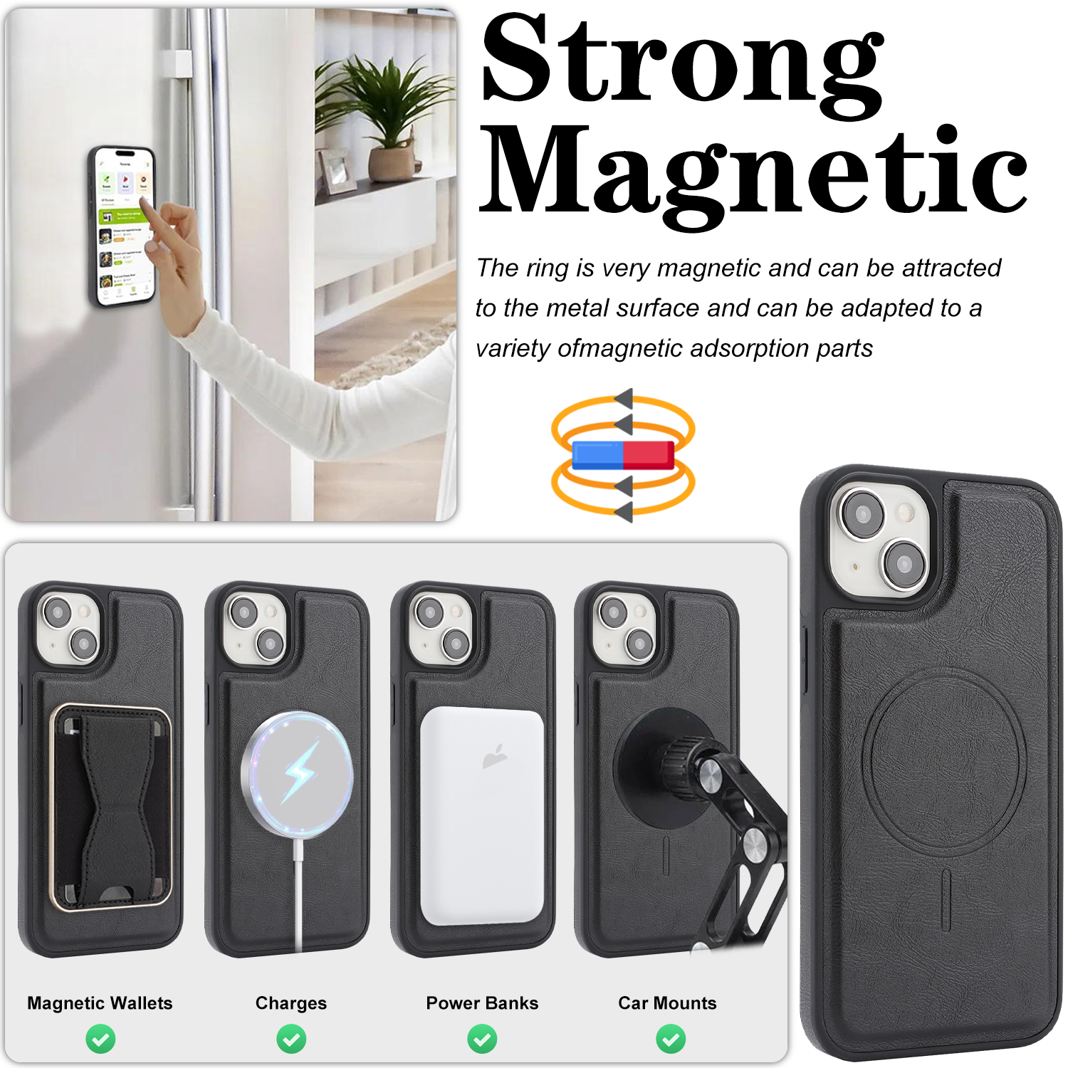 - Compatible with MagSafe Supports magnetic accessories and wireless charging with strong N52 neodymium magnets in both case and card holder.