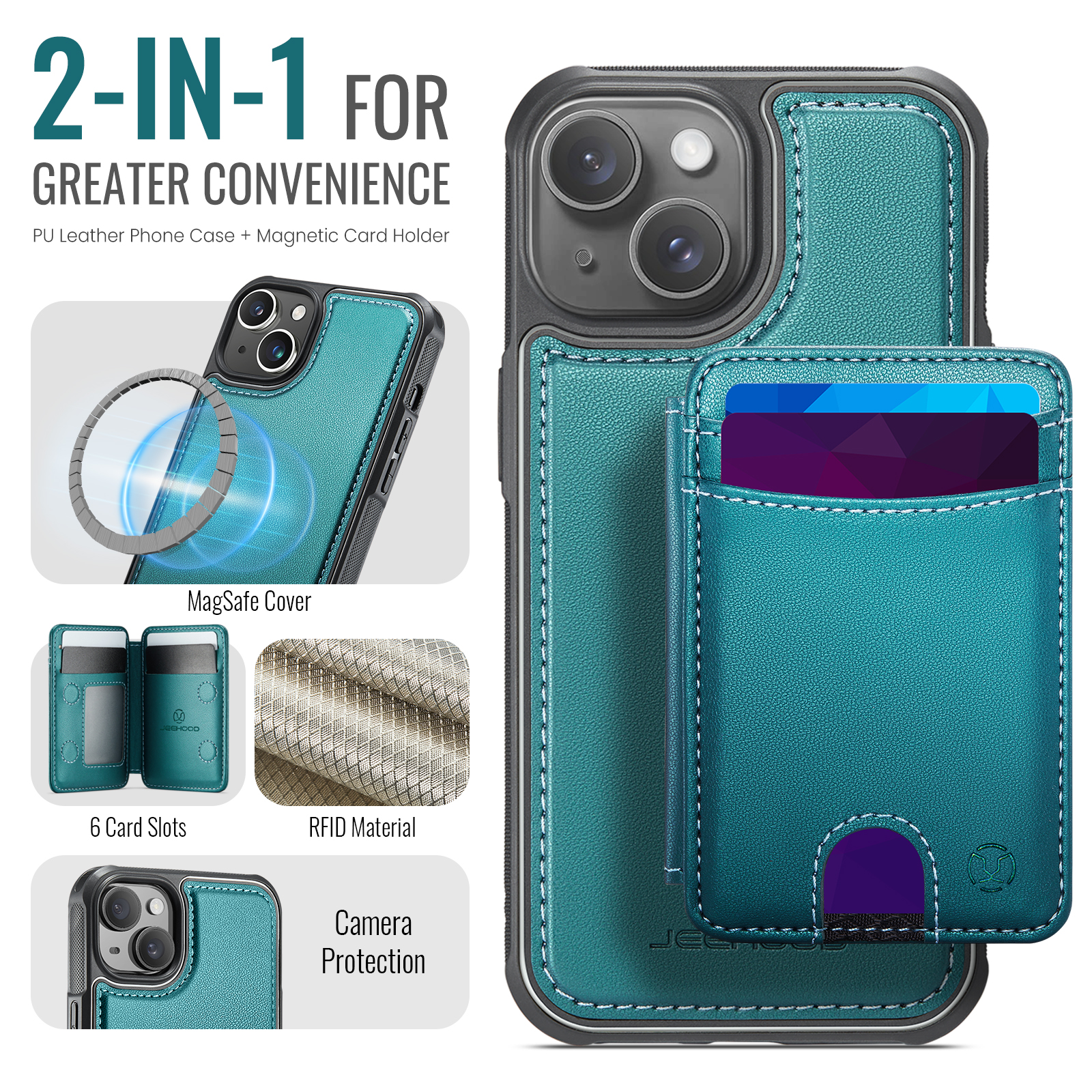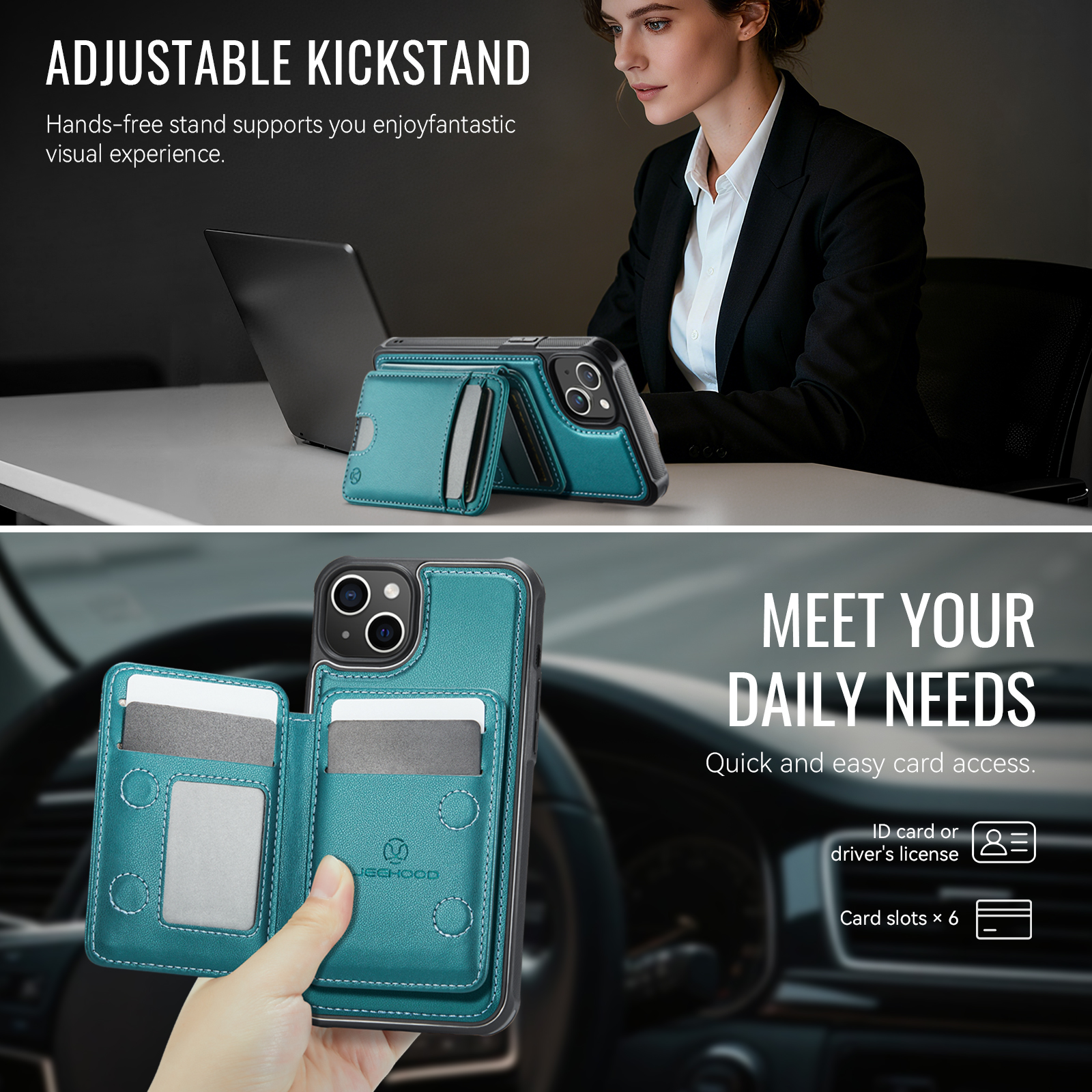 - Multi-Card Design Features 2 card slots on the front, and 4 additional card slots (1 photo slot + 3 card slots) inside for maximum organization.