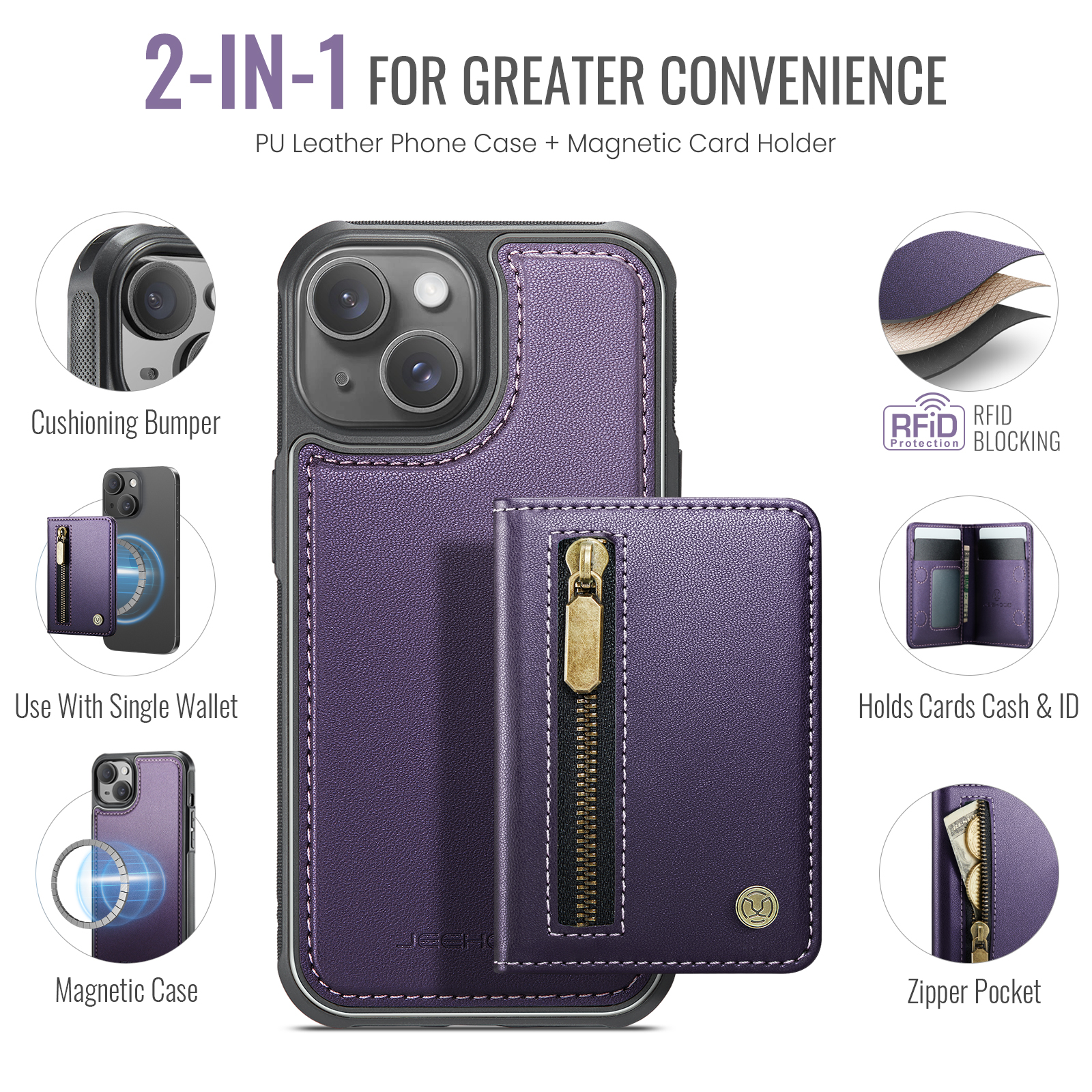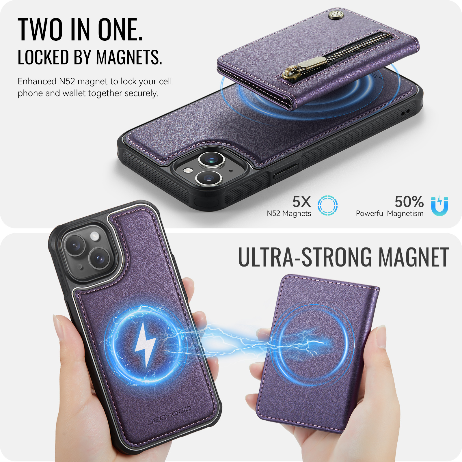 - Detachable Magnetic Design The card wallet and phone case can be magnetically attached or detached, and can be used separately.