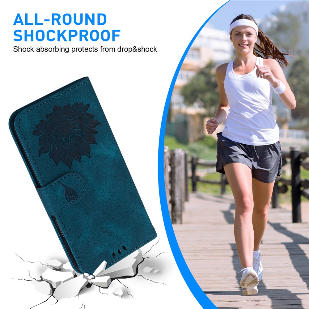 - PU leather shell with lotus imprinting pattern decor, fashionable and stylish