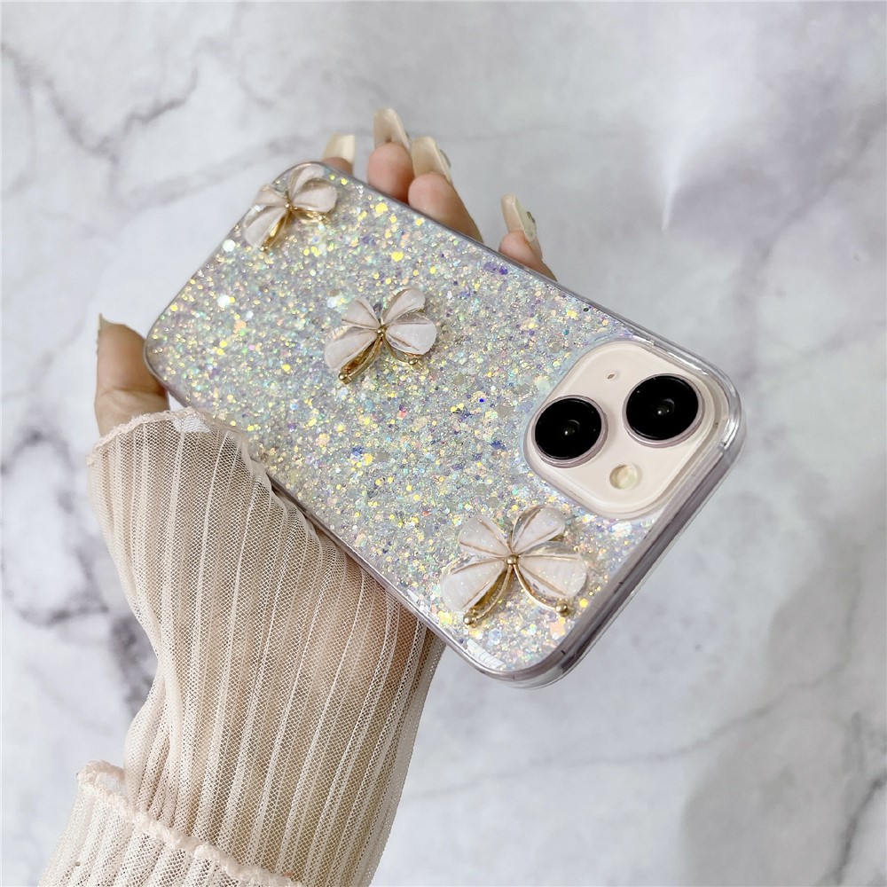 - Epoxy craft and 3D butterflies set against a sparkling glitter backdrop add a touch of elegance and whimsy to your device