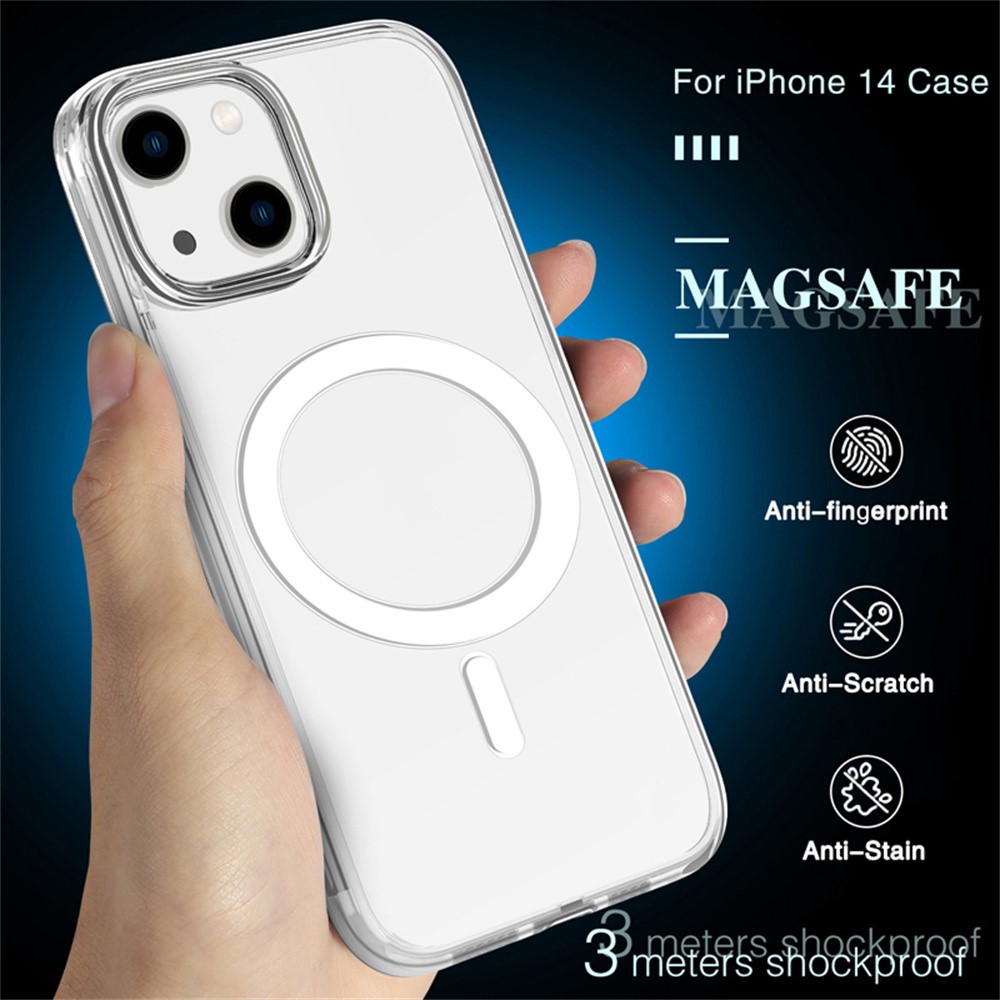 For iPhone 14 Magnetic Case Compatible with MagSafe PC + TPU Clear Phone Cover – Transparent