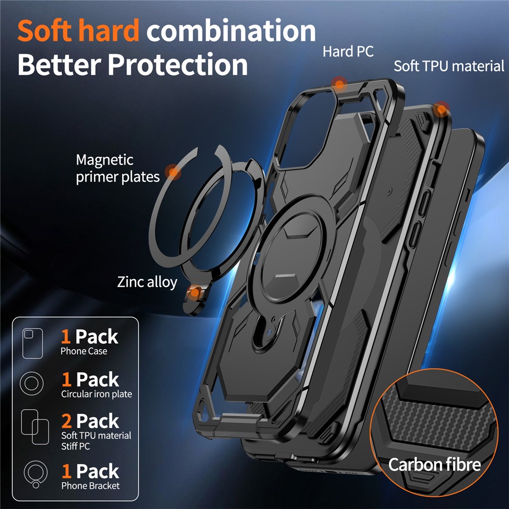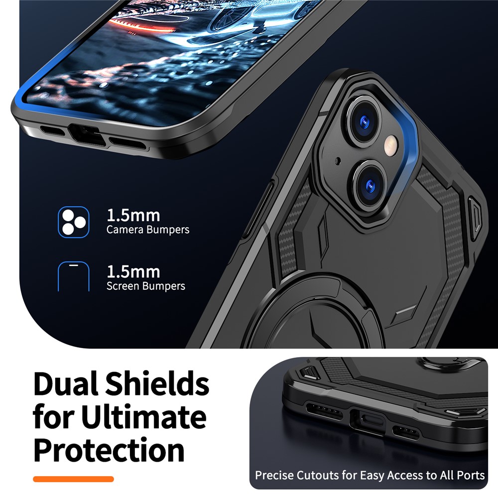 - Magnetic Ring Kickstand Features a magnetic ring kickstand for easy one-handed operation and doubles as a convenient phone kickstand for desktop or in-car use, enhancing versatility.