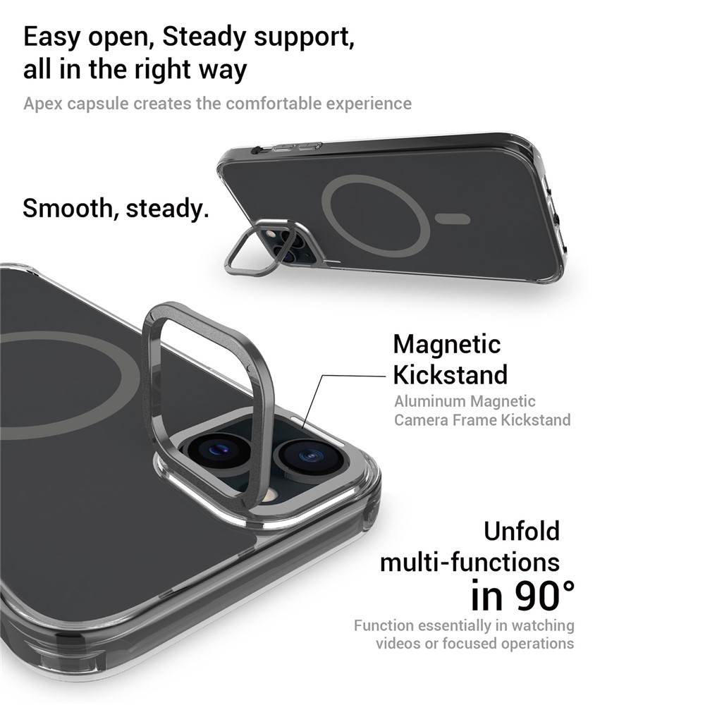 - Camera Frame Kickstand Metal lens kickstand with damping design allows free-angle adjustments (0-90°) for hands-free viewing, photography, or travel convenience