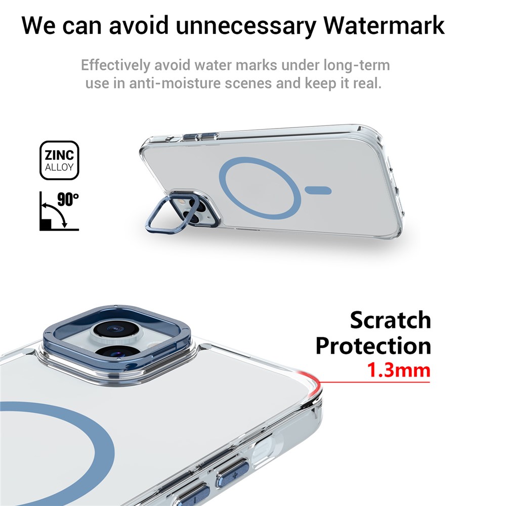 For iPhone 14 Magnetic Case Shockproof TPU + PC Phone Back Cover with Metal Lens Kickstand – Blue
