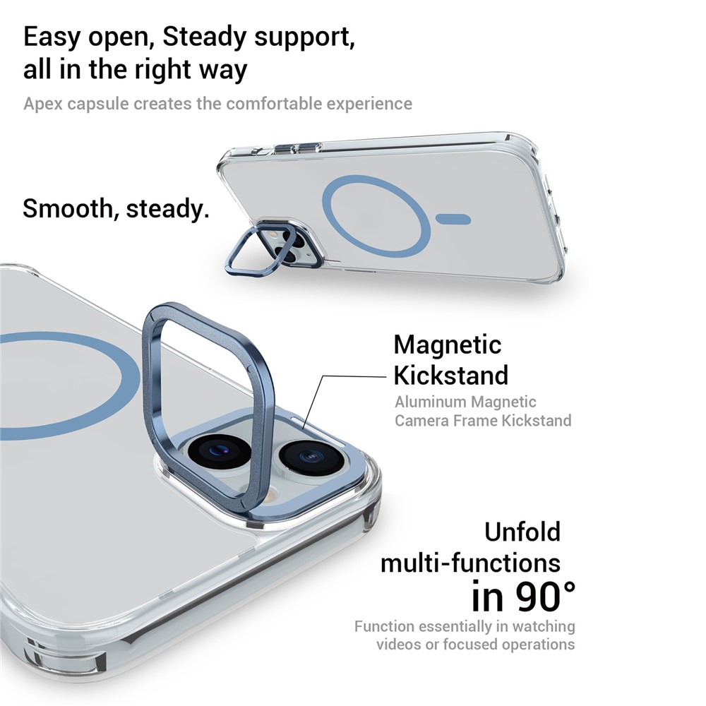 • Camera Frame Kickstand Metal lens kickstand with damping design allows free-angle adjustments (0-90°) for hands-free viewing, photography, or travel convenience