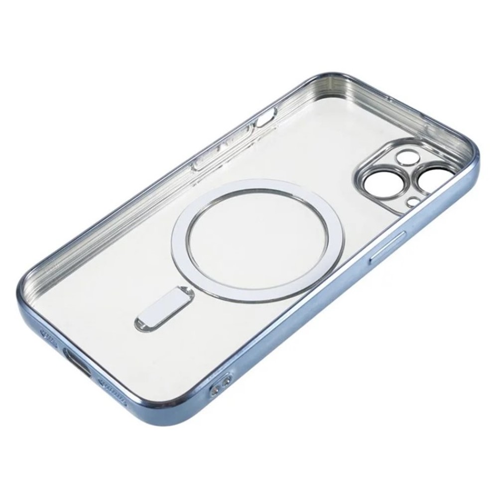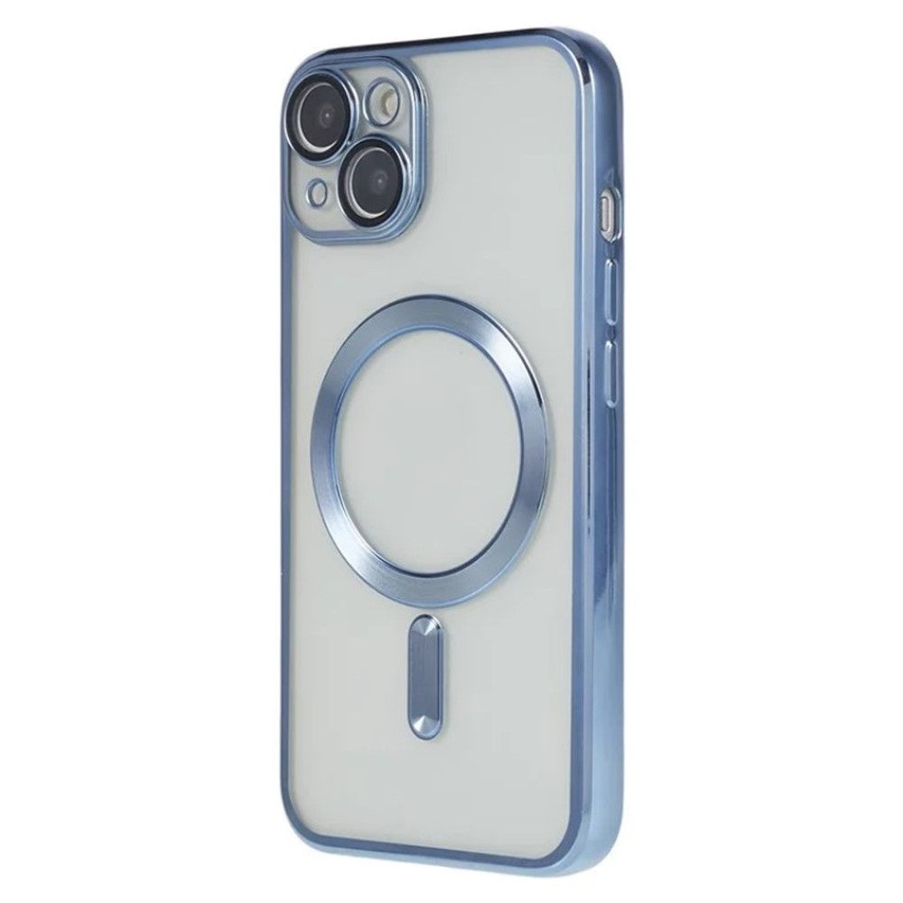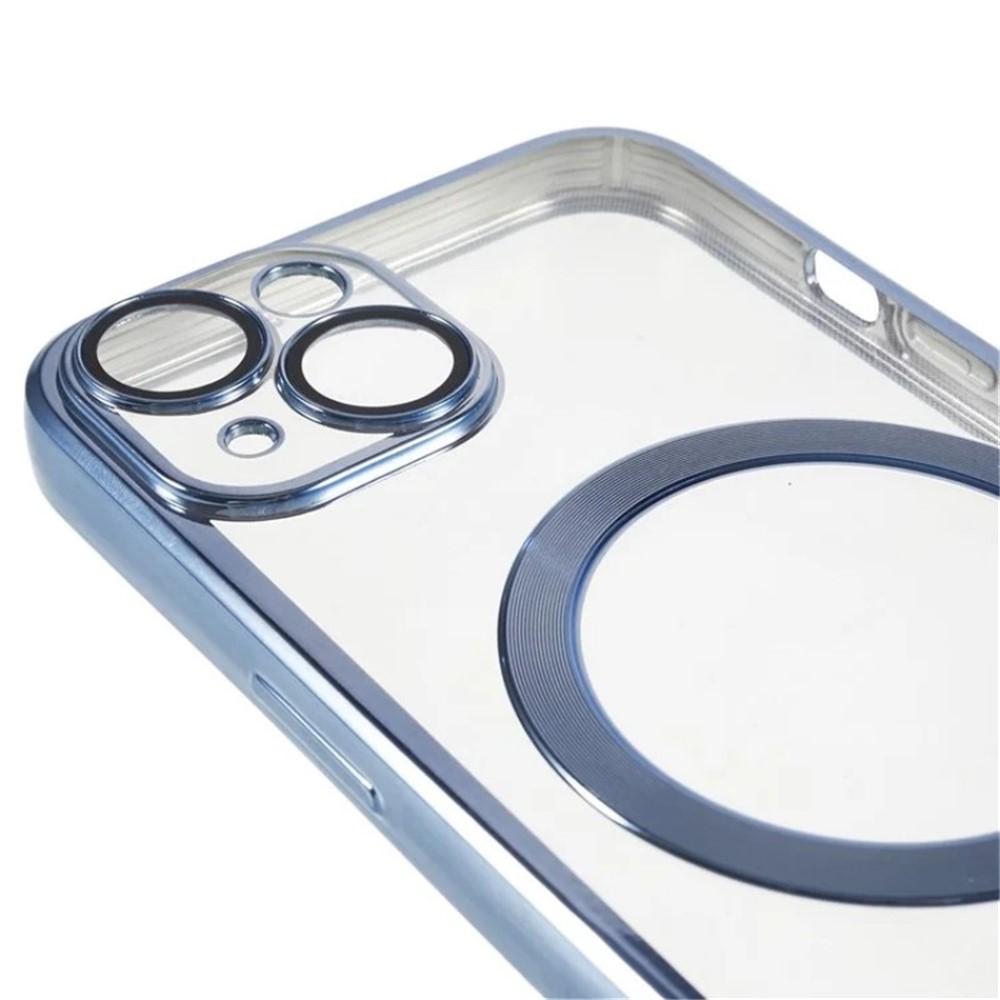 For iPhone 14 Magnetic Case WANLONFENG Full Protection Electroplated TPU Cover with Tempered Glass – Blue