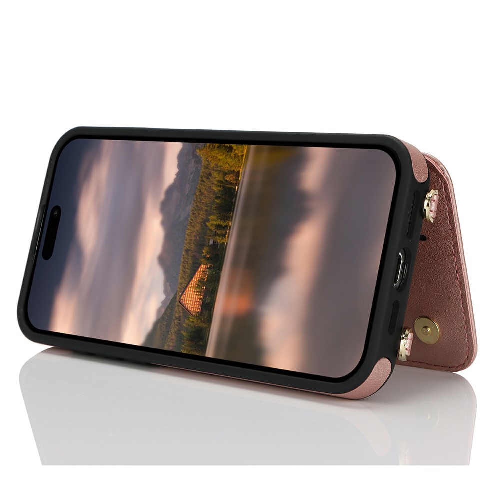 - Multi-Functional Card Slot Features a button-closure card holder on the back that securely stores your cards and doubles as a kickstand for hands-free viewing