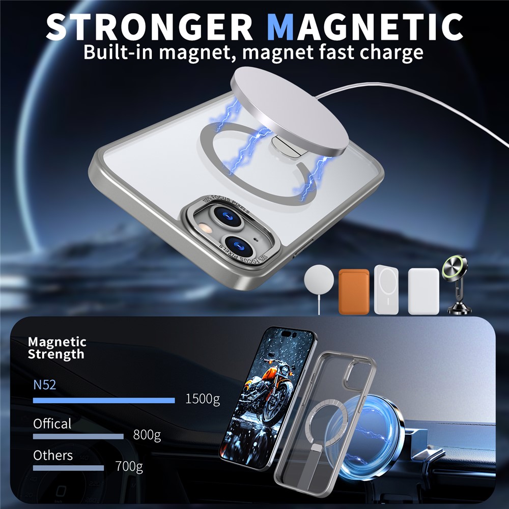 - Strong Magnetic Force Built with an N52-grade magnetic ring delivering up to 1500g of magnetic strength, this case is compatible with MagSafe chargers and magnetic car mounts