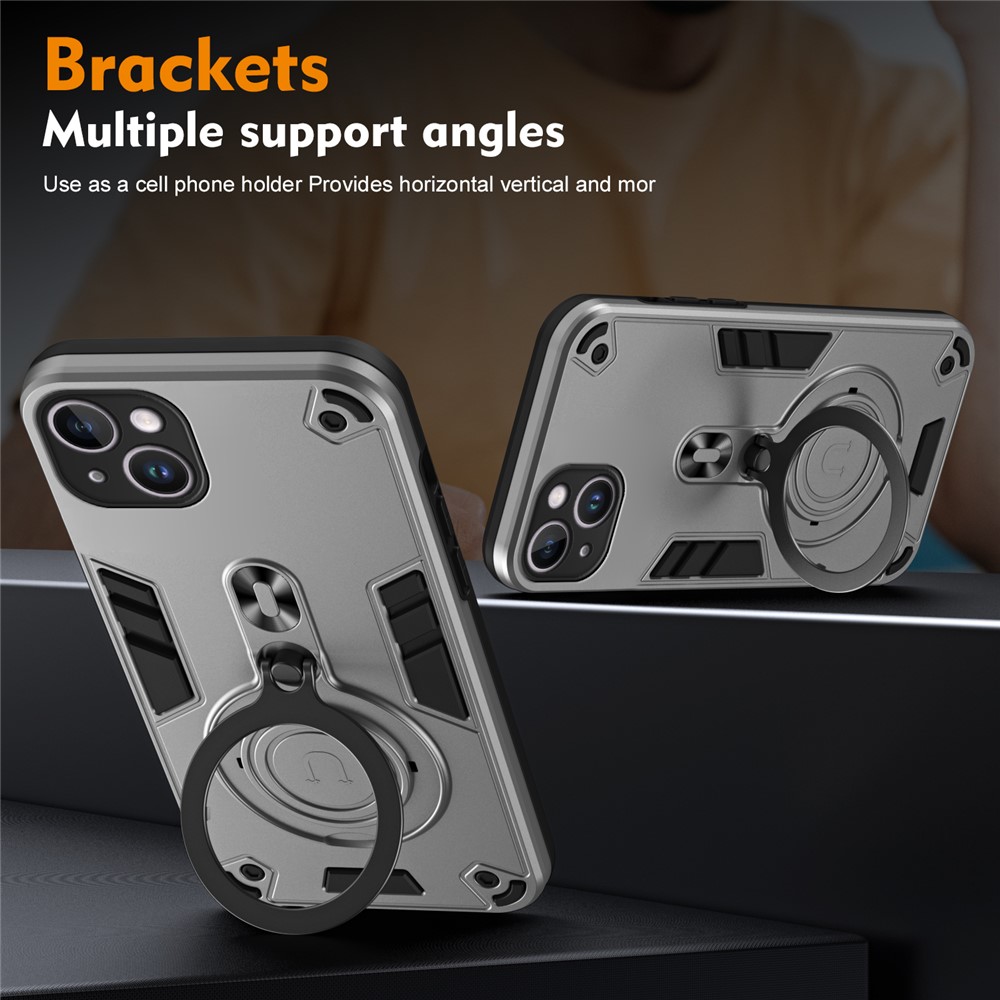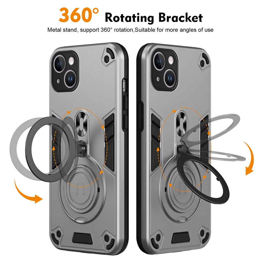 For iPhone 14 Plus Case Rotatable Kickstand PC+TPU Drop Protection Phone Cover - Silver $14.30