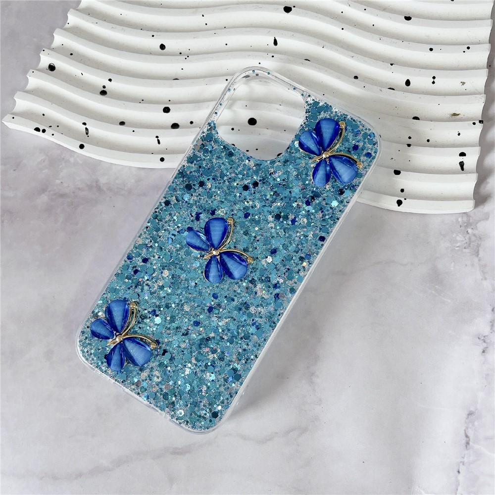 - Epoxy craft and 3D butterflies set against a sparkling glitter backdrop add a touch of elegance and whimsy to your device