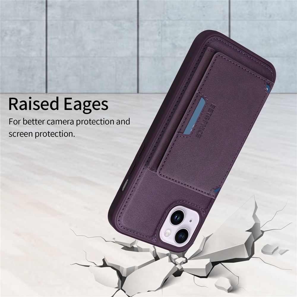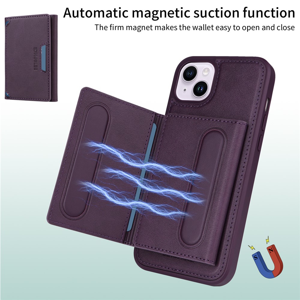 For iPhone 14 Plus Magnetic Case BETOPNICE Leather Phone Cover Kickstand with Detachable Card Bag – Purple