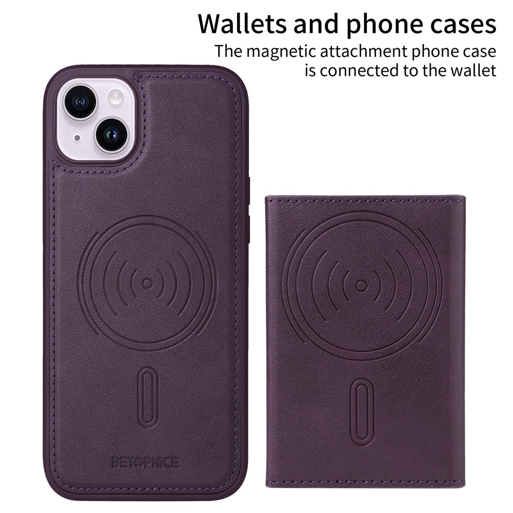 For iPhone 14 Plus Magnetic Case BETOPNICE Leather Phone Cover Kickstand with Detachable Card Bag - Purple