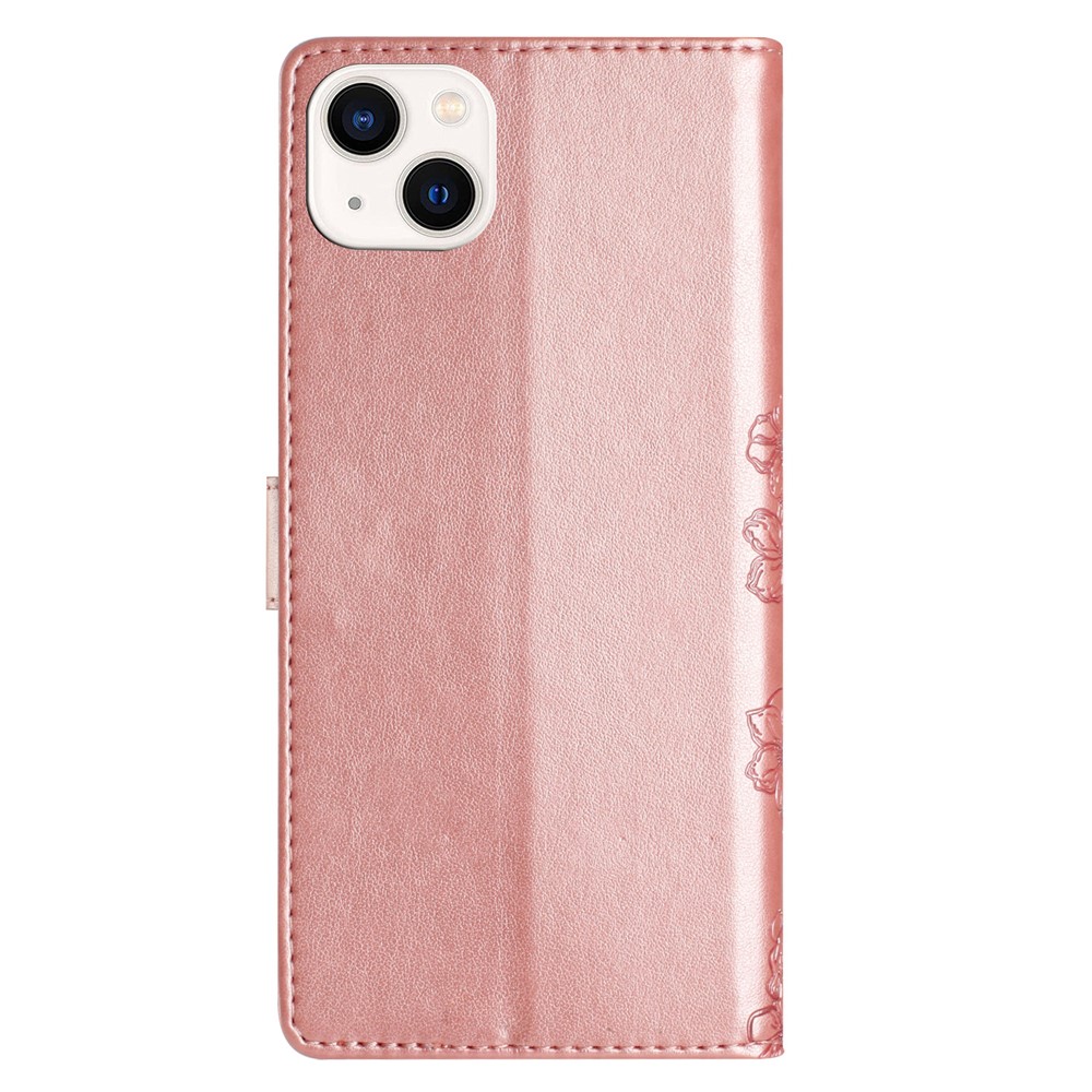 For iPhone 14 Plus Skin-Touch Feeling PU Leather Phone Case Imprinted Pattern Wallet Phone Cover - Rose Gold $15.94