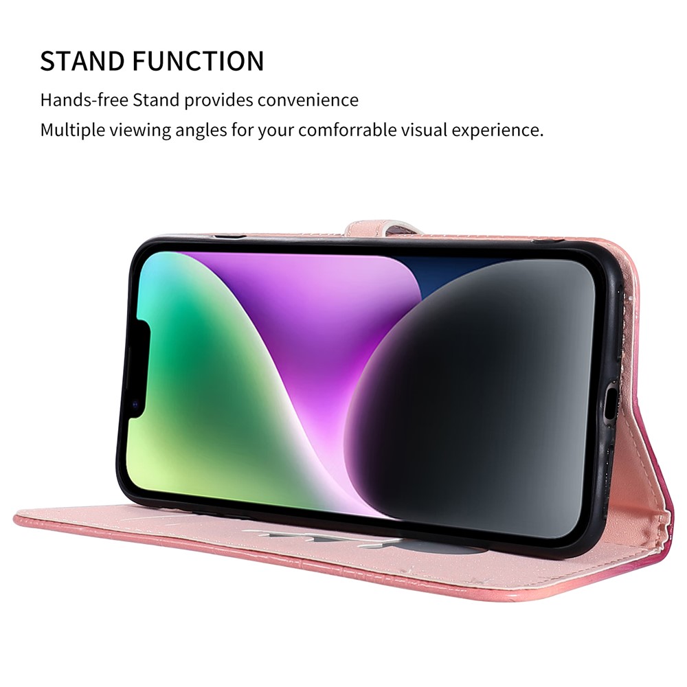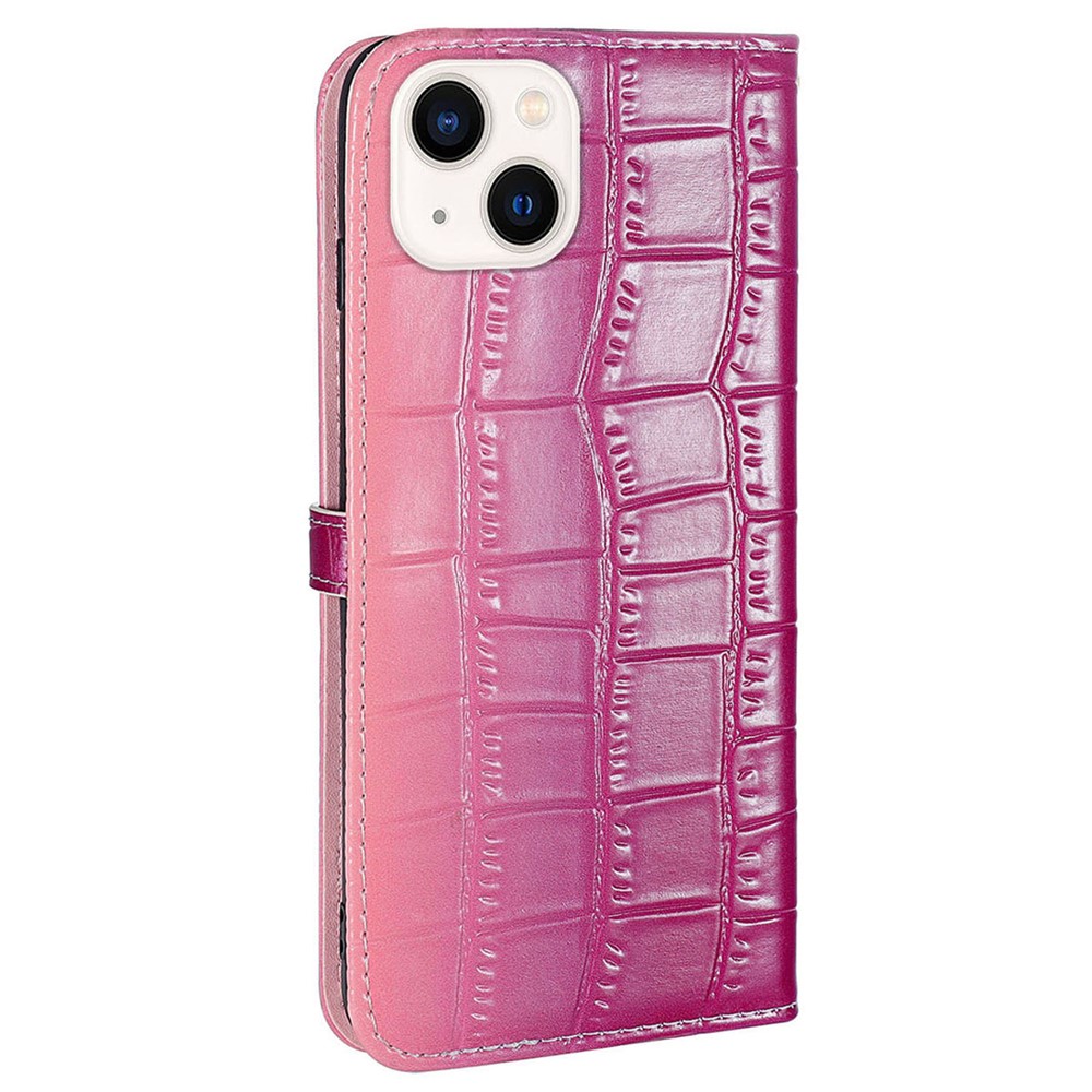 For iPhone 14 Plus Wallet Case Gradient Crocodile Texture Protective Phone Cover – Pink