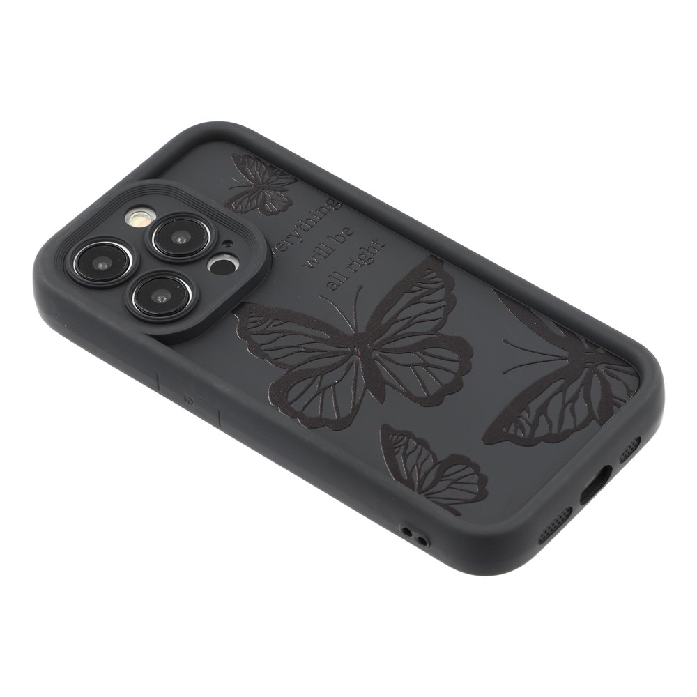 For iPhone 14 Pro Case Butterfly Print TPU Shockproof Phone Back Cover – Black