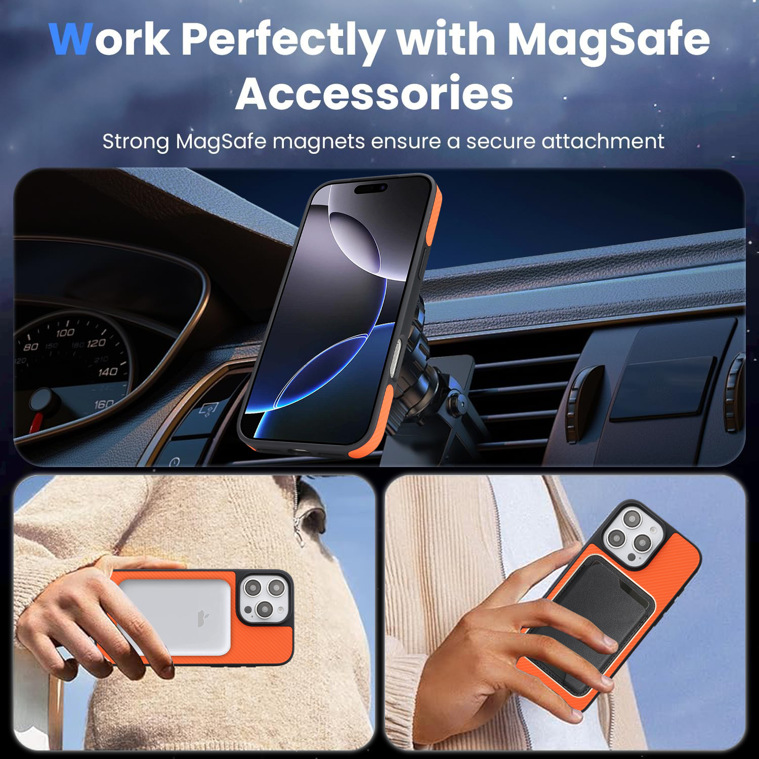 • MagSafe Compatible Strong magnetic attraction supports for MagSafe accessories and wireless chargers for convenient use.