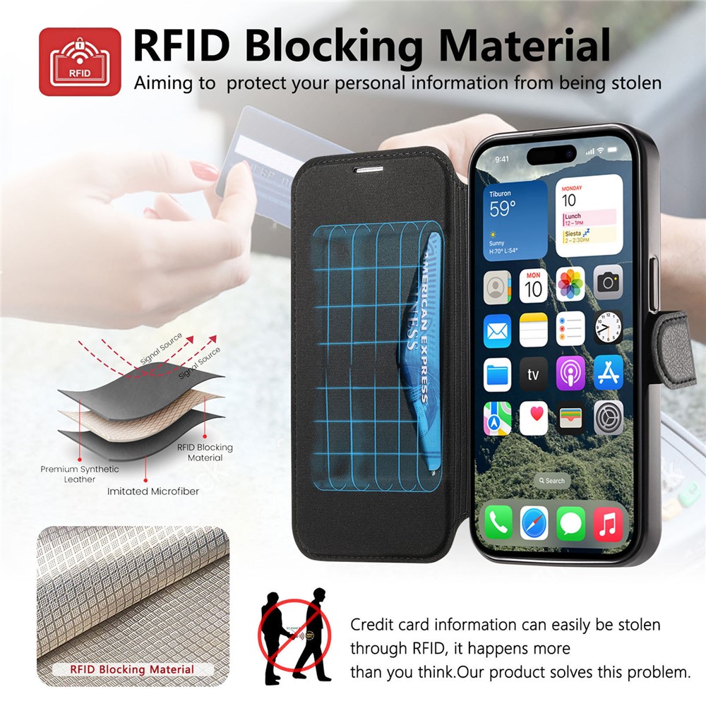 - RFID Technology Equipped with RFID-blocking technology, this case prevents unauthorized scanning of your cards, protecting your sensitive information from identity theft and fraud. It ensures your cards are safe and secure, offering peace of mind in public spaces