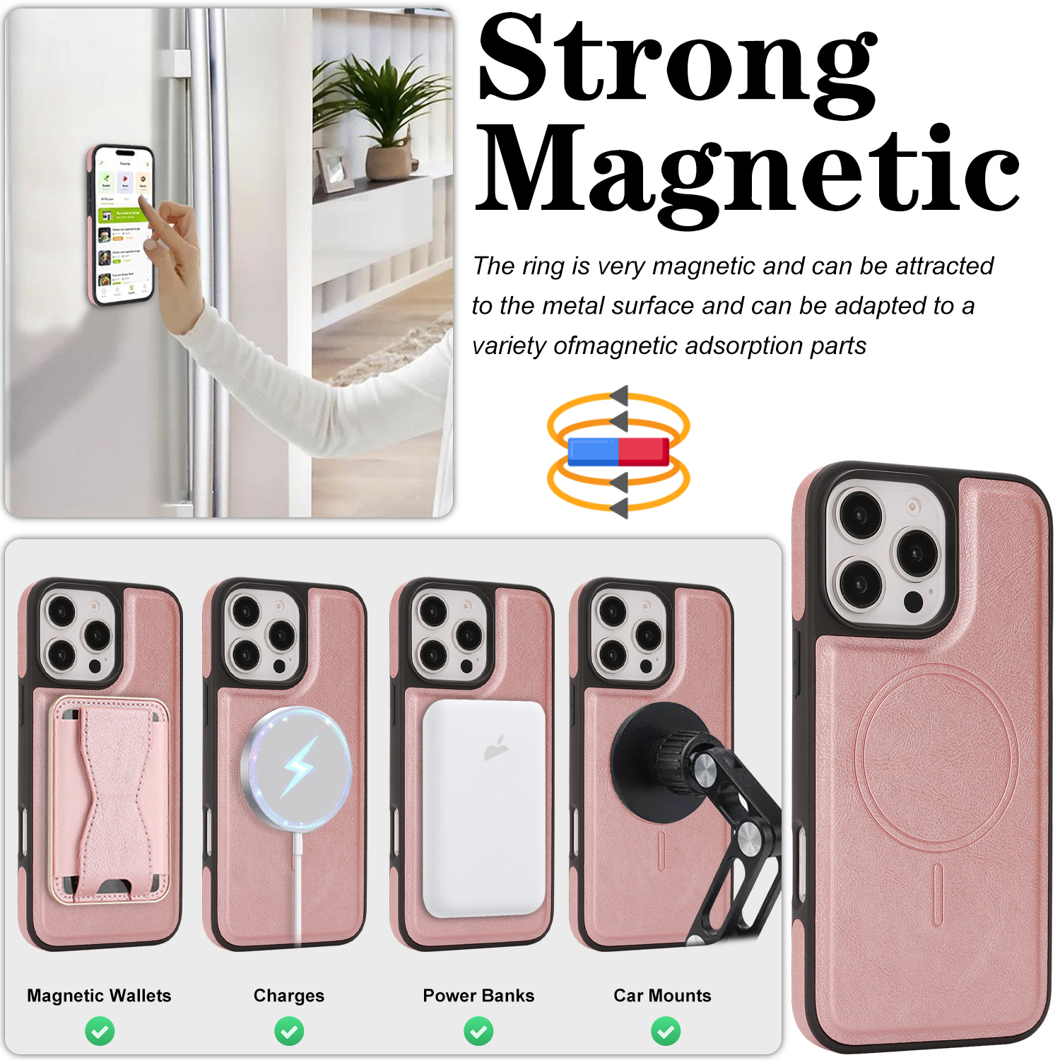 For iPhone 14 Pro Case Compatible with MagSafe Leather Back Phone Cover with Detachable Card Holder Kickstand – Rose Gold