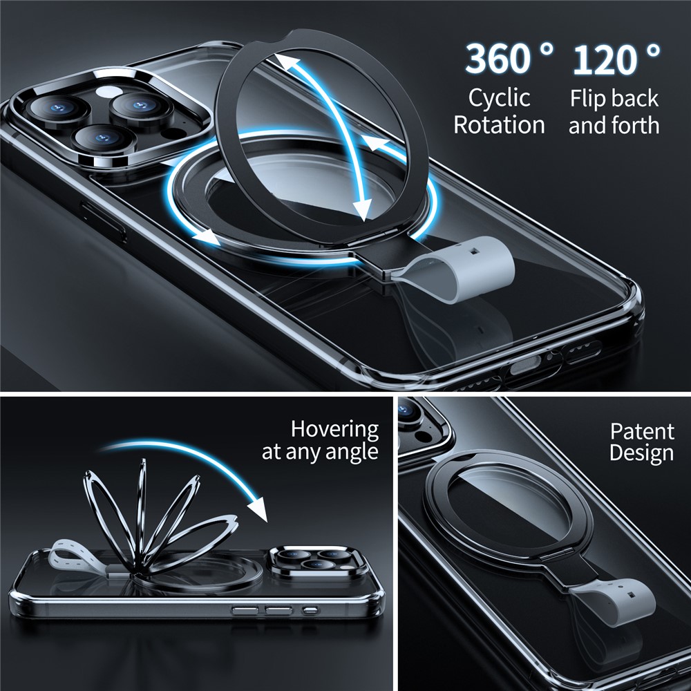 - 360-Degree Rotating Magnetic Kickstand: Features a 360-degree rotating ring kickstand with a 120-degree flip capability, allowing you to adjust the stand to any angle for the best hands-free viewing experience